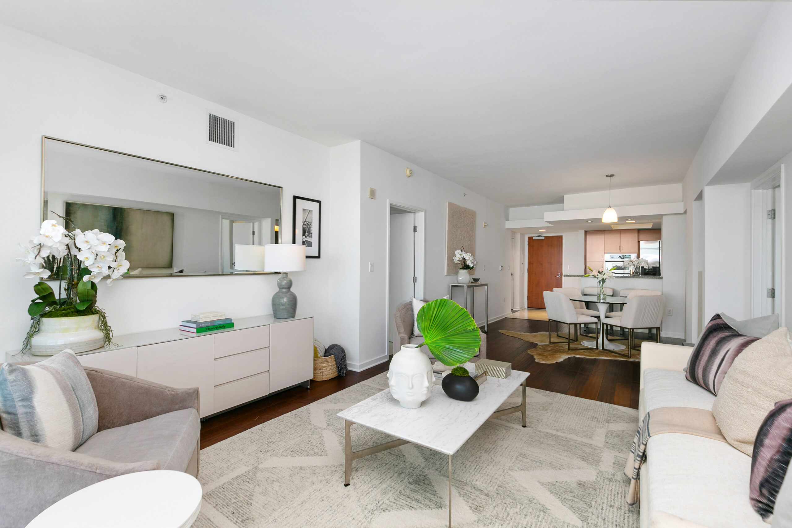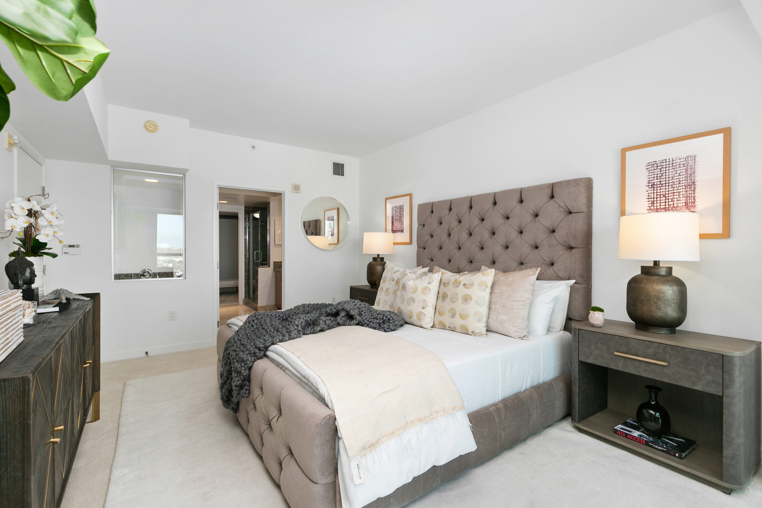This sensational unit is on the tenth floor of the exclusive Azzurra Full Service Luxury Condominium building in Marina del Rey. Offering 2 bedrooms and 2.5 baths with magnificent views from every window of the Marina and Santa Monica Mountains, a great place for Yacht lovers to call home. Walking into this wonderful unit, you are met with Crema Marfil marble floors leading you into the divine kitchen which showcases bleached wood cabinets with seamless frosted glass cabinetry, stainless steel appliances, and granite countertops. The kitchen also has a breakfast/bar area with seating. As you make your way through the wood-floored main room, you are met with a superb open dining room and living room. The dining area contains niches, perfect for displaying antiques and decor. The spacious, light, and bright living area leads you to the incredible balcony to relax on at the end of the day and take in the glorious Marina and mountain sunset views. Both bedroom suites are located on opposite sides of the unit and feature wonderful soft, white plush carpets. The principal suite offers space for a sitting area to enjoy the sprawling views of the Marina and Santa Monica Mountains, a beautiful spacious bathroom with Crema Marfil marble flooring, double vanity sinks, a lovely bathtub, a separate walk-in shower, and a spacious walk-in closet. Across the walkway, the secondary suite presents the same exceptional views and an adjacent ensuite Crema Marfil marble-floored bathroom with a linen closet and a large walk-in closet. The unit comes with a powder room for guests off the entry, and coat closet storage space, as well as a washer and dryer in the unit. This spectacular building offers a surplus of amazing amenities including, 24-hour hotel-style concierge service, valet parking, a rooftop spa and sky lounge with unbeatable views of the marina and ocean, a heated pool and spa, a business center, a great indoor and outdoor & fitness centers with pilates and yoga studio, conference rooms with a specialty coffee maker, a movie screening room, a residents lounge, an exclusive dog park only for Azzurra residents and much more. The building is also only minutes away from a great assortment of dining and entertainment for everyone to enjoy.