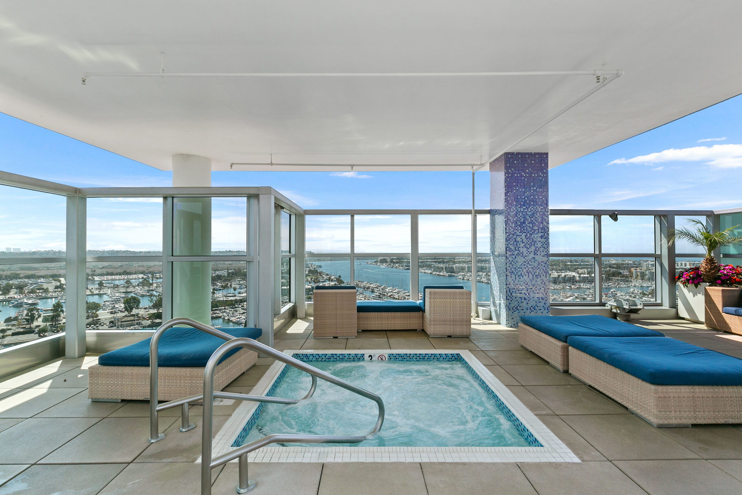 - Incredible balcony with sprawling Marina, City and Mountain views.