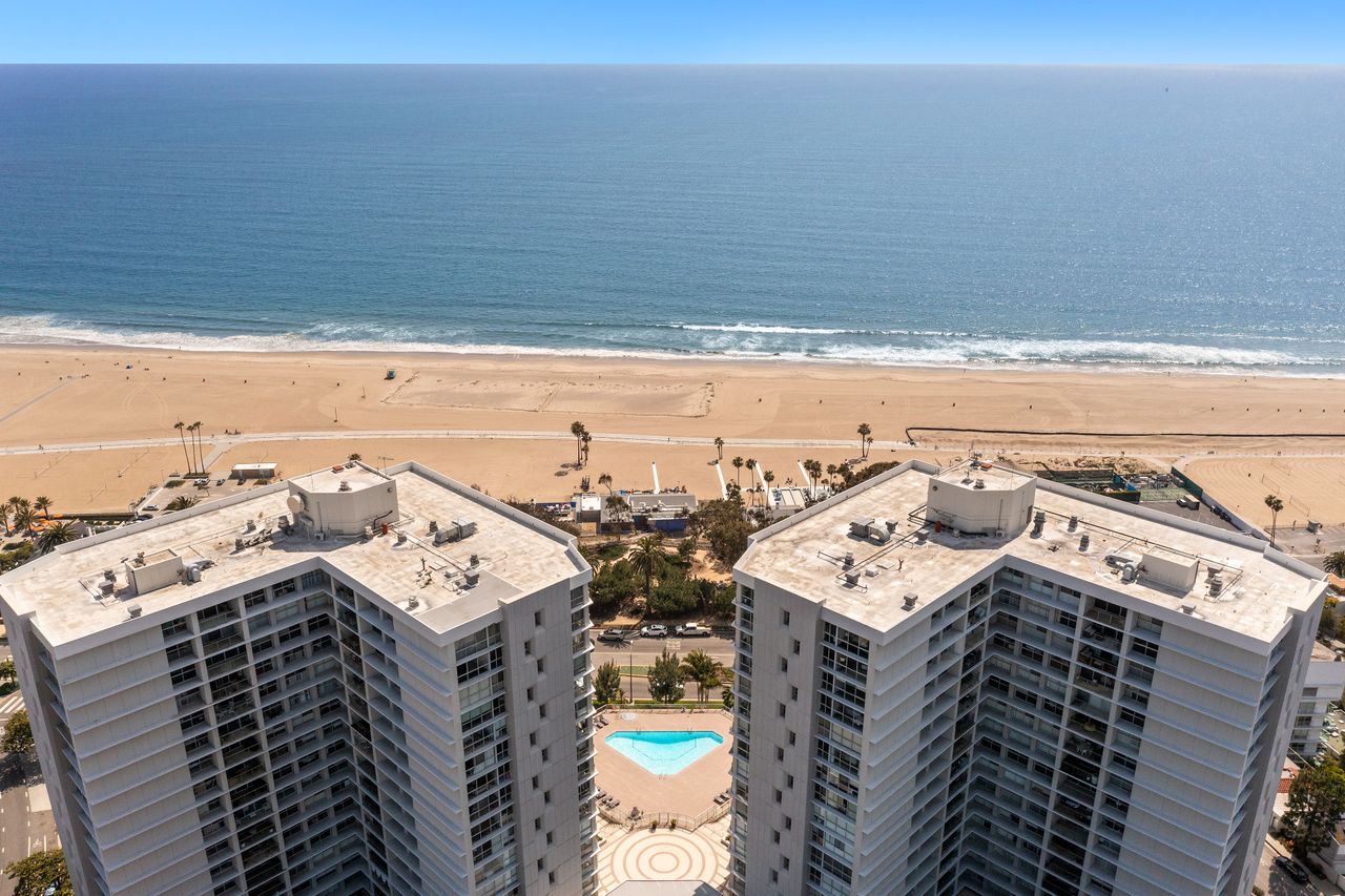 A genuine coastal luxury condo-co-op showcasing the serene California coastline with expansive views from the Santa Monica Mountains to the skyscrapers of Downtown LA, Century City and the stunning Santa Monica mountains. Located on floor below the penthouse level at the sought after Ocean Towers is this modern 3 bed, 3 bath, corner unit condo. This unit has a wonderful open floor plan with living room, & dining area with floor-to-ceiling sliding glass doors to a wonderful terrace to enjoy the calm ocean breeze. Off the kitchen is an office space or 3rd bedroom with electrical shades which featured throughout every room of this condo. A separate powder room for guest leads to the primary en-suite bedroom featuring a private bath with dual sinks and floor-to-ceiling, immersed views of the skyline stretching passed Los Angeles and Santa Monica. The 2nd bedroom features the same floor-to-ceiling windows with a separate full bath and breathtaking views of the Santa Monica Mountains. Your opportunity to live in coastal luxury in this full service building featuring 24 hour valet parking and security, pool, spa, gym and staffed concierge.