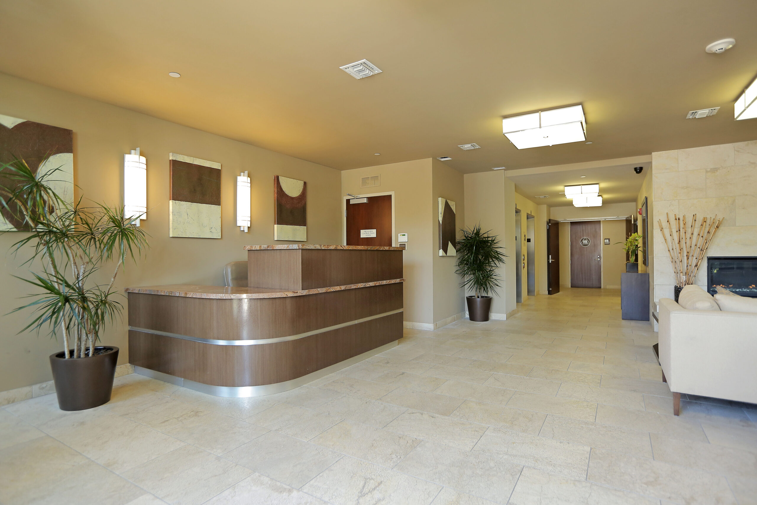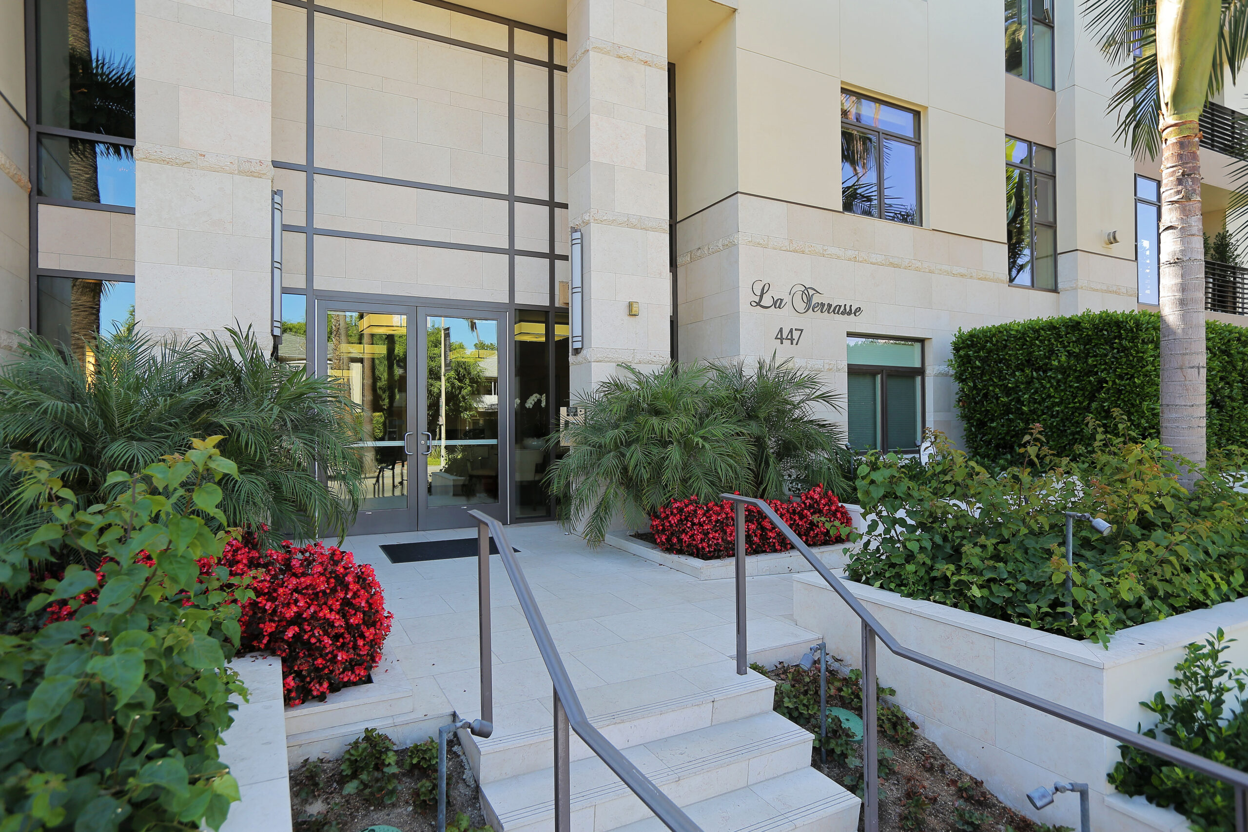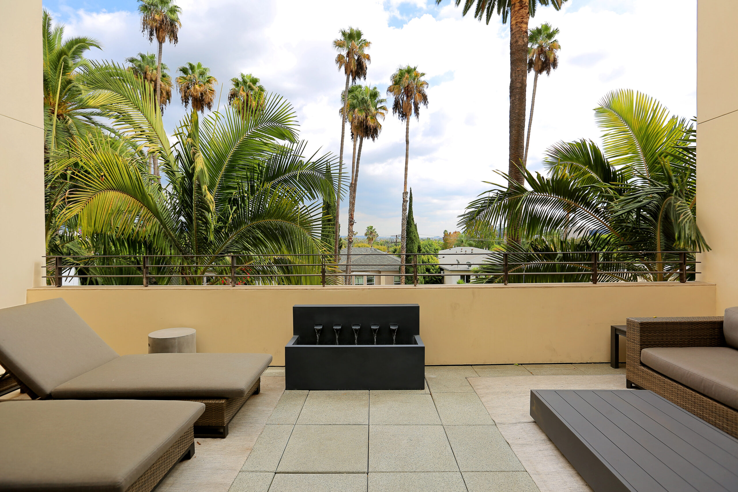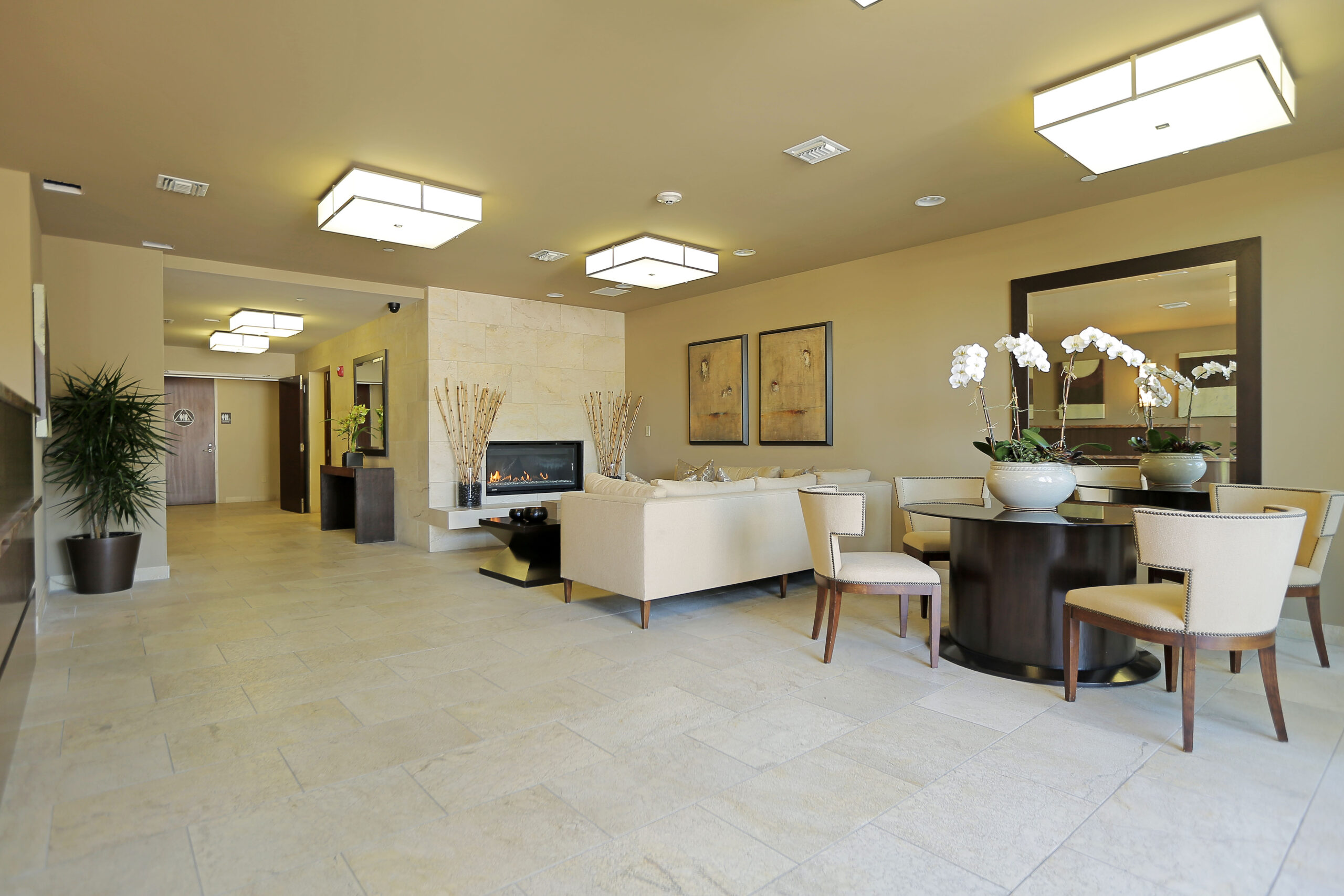 The luxurious condo building in Beverly Hills in one of Beverly Hills newest and finest buildings. Unit #101 conveniently located on the 1st floor with formal entryway and powder room & 2 bedroom suites on opposite sides of the unit. Stunning hardwood floors, this light and bright unit has an open floor plan and a rare and spacious private covered outdoor garden terrace for the unit. Wonderful living room area with gas fireplace, bar area & dining area in the main room. Beautiful gourmet kitchen with stainless steel appliances, granite counters and stunning wood lacquered cabinets. The master suite has a large entry area, two spacious walk in closets, picture windows in the bedroom, sitting area and stunning all marble bathroom with double sinks. The building has wonderful amenities such as an elegant and comfortable lobby with fireplace, 24 hour concierge service, screening media room, modern gym with outdoor lounge area with fountain and a separate 4th floor lounge with gas fire pit area with beautiful views of the palm trees and the city. Private laundry area inside the unit. Two side by side parking spaces and ample guest parking