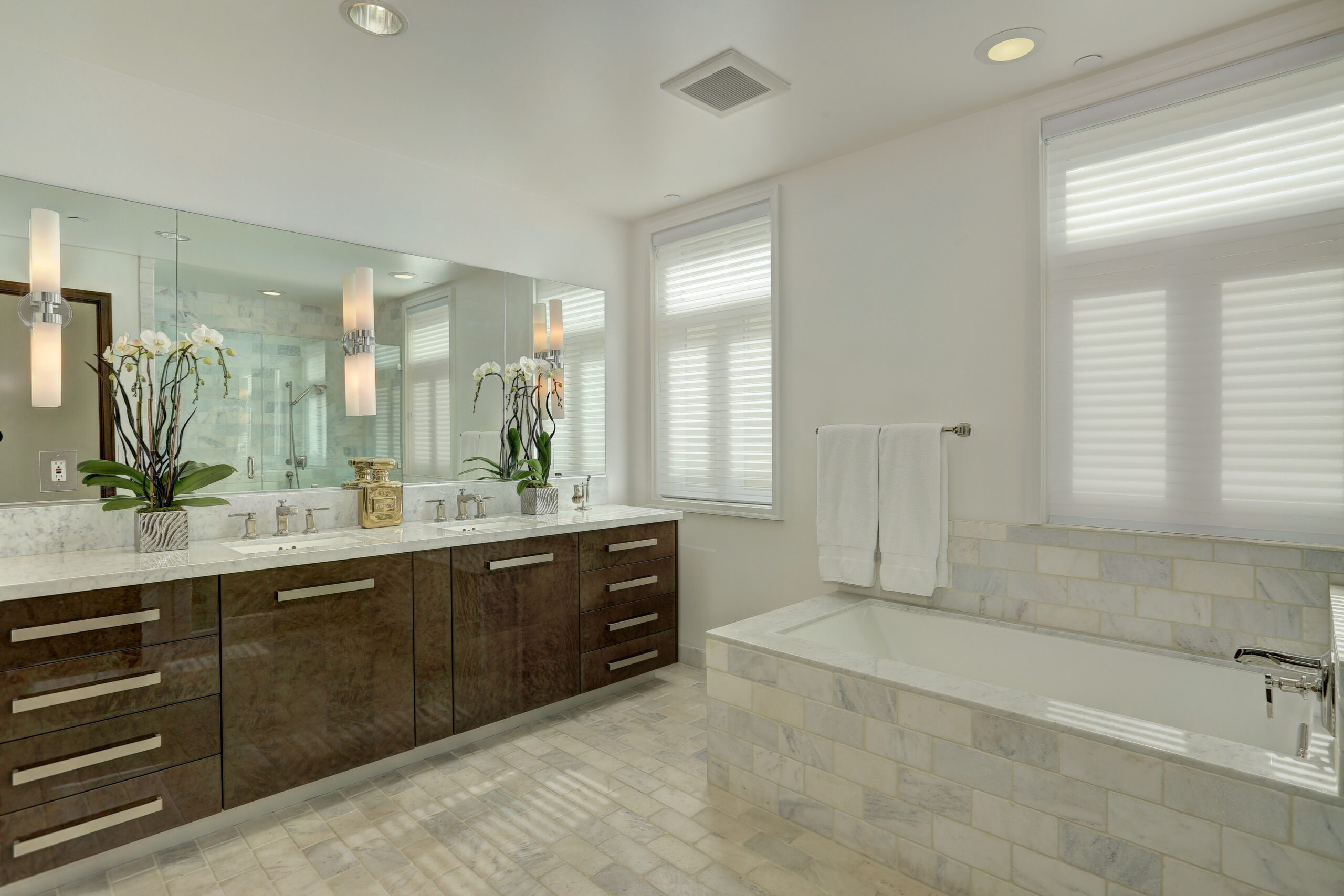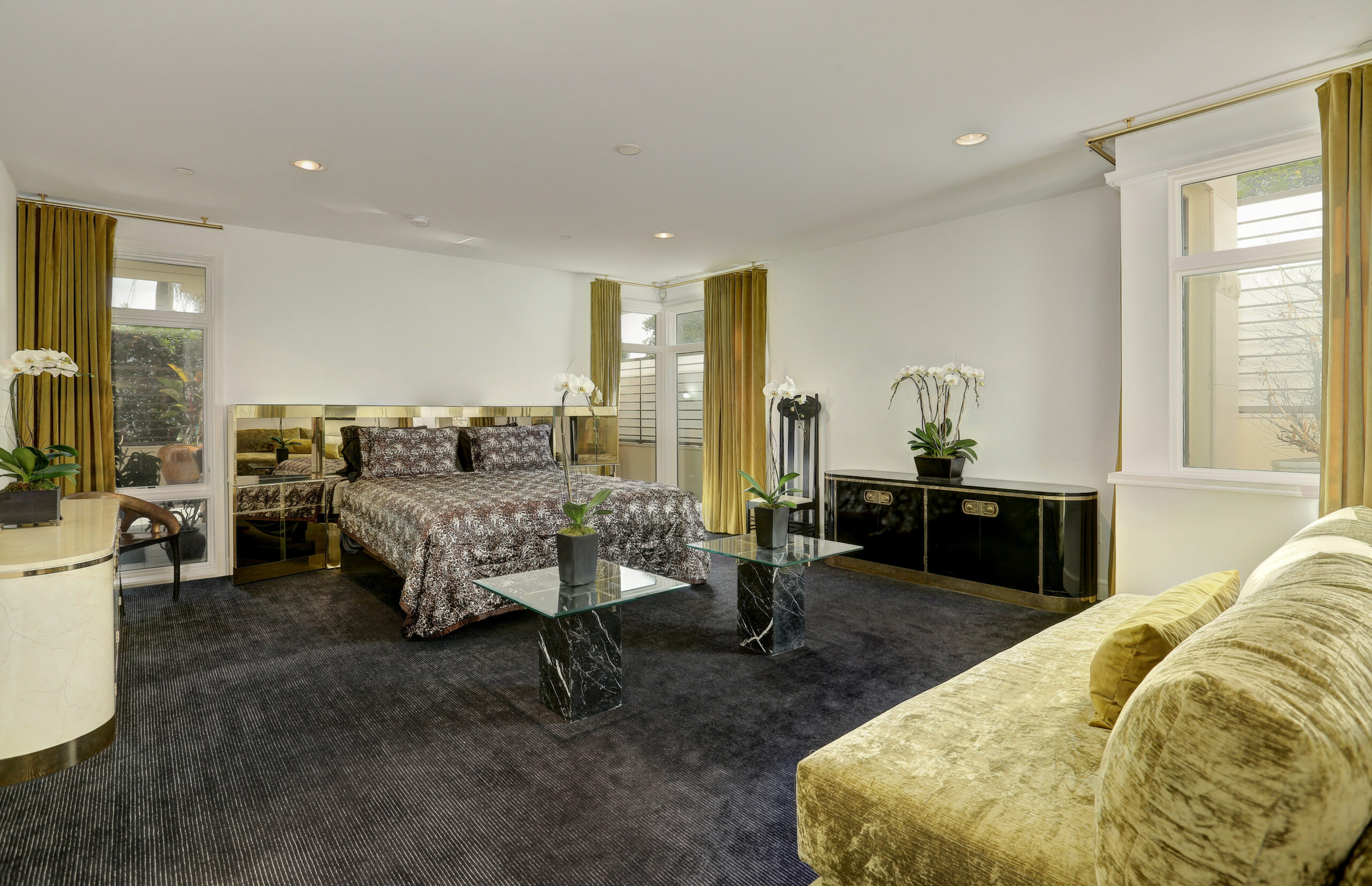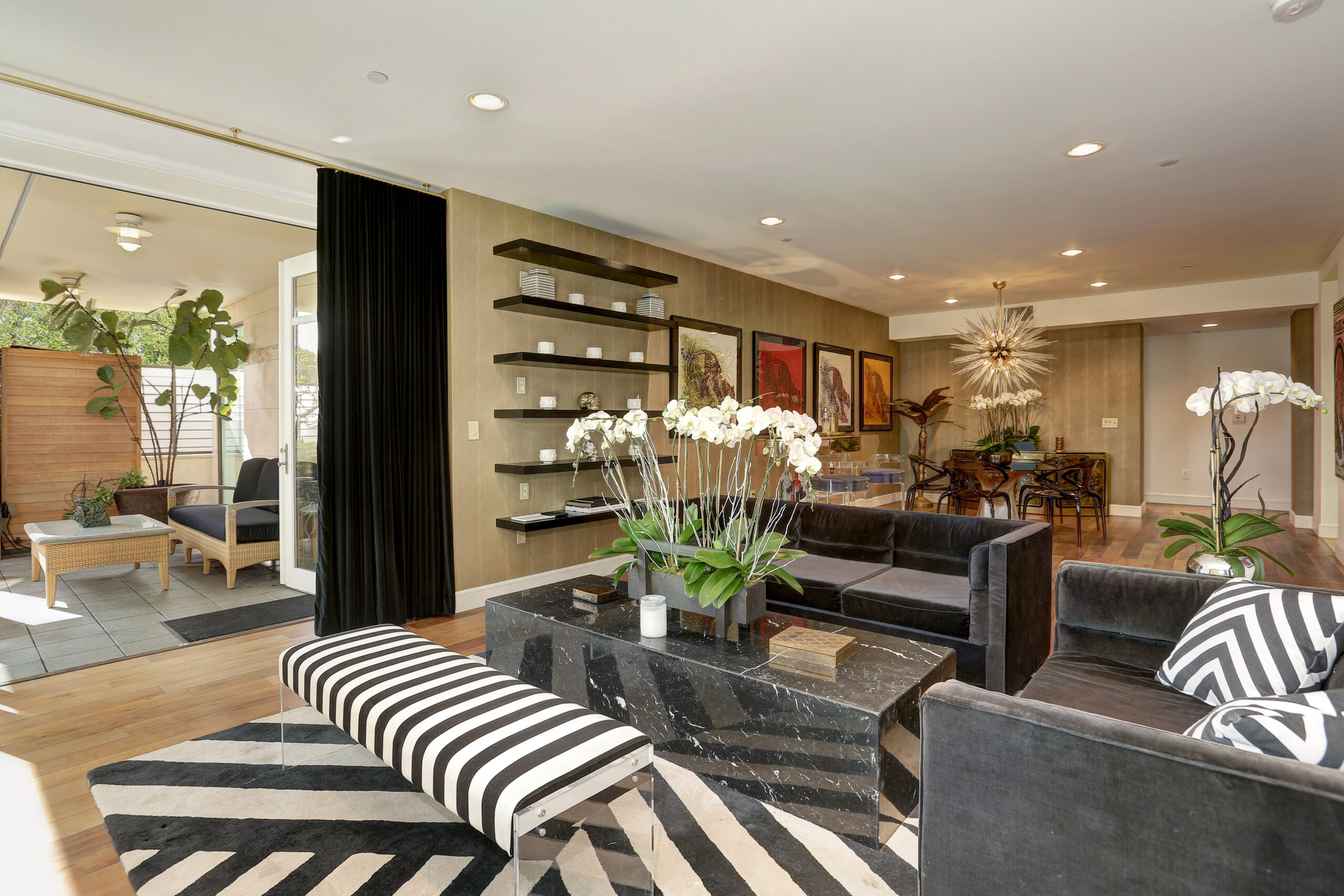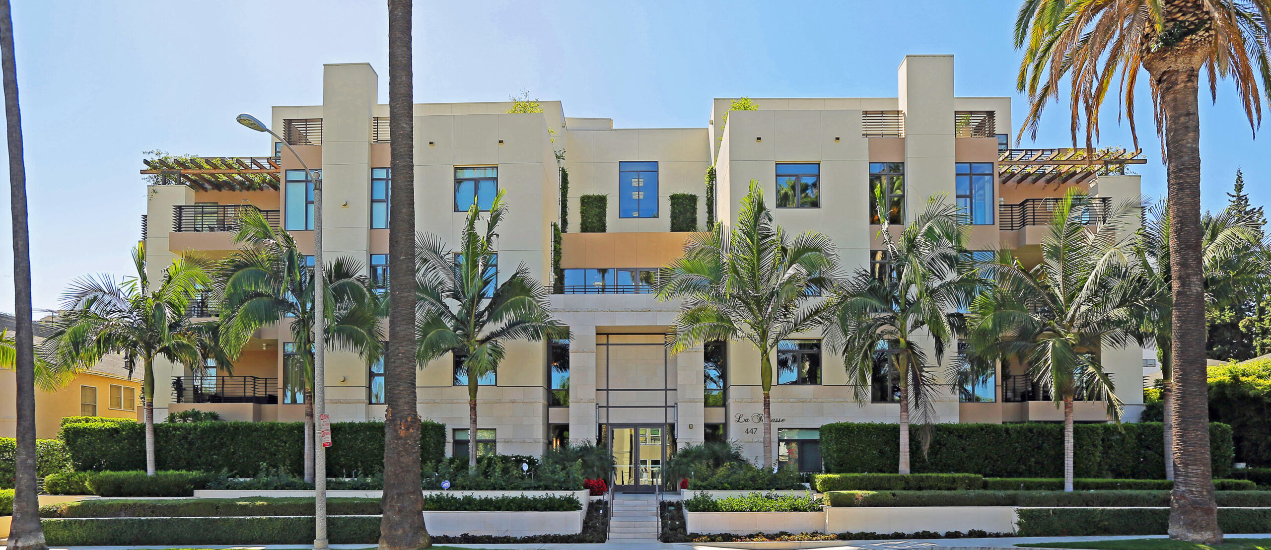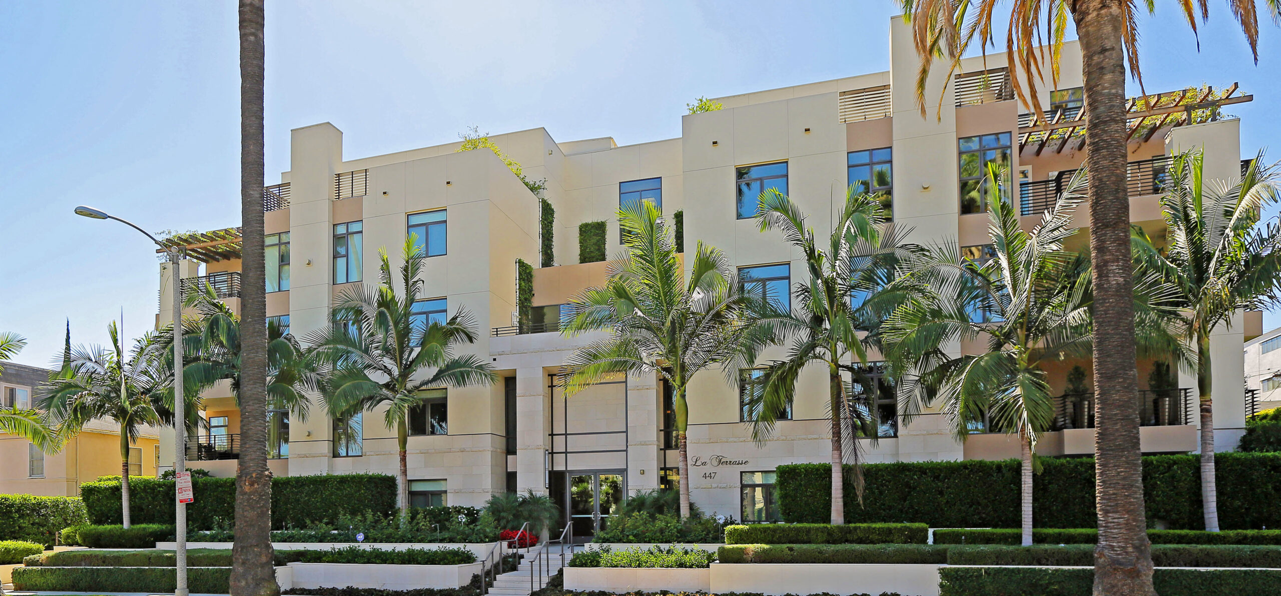 The luxurious condo building in Beverly Hills in one of Beverly Hills newest and finest buildings. Unit #101 conveniently located on the 1st floor with formal entryway and powder room & 2 bedroom suites on opposite sides of the unit. Stunning hardwood floors, this light and bright unit has an open floor plan and a rare and spacious private covered outdoor garden terrace for the unit. Wonderful living room area with gas fireplace, bar area & dining area in the main room. Beautiful gourmet kitchen with stainless steel appliances, granite counters and stunning wood lacquered cabinets. The master suite has a large entry area, two spacious walk in closets, picture windows in the bedroom, sitting area and stunning all marble bathroom with double sinks. The building has wonderful amenities such as an elegant and comfortable lobby with fireplace, 24 hour concierge service, screening media room, modern gym with outdoor lounge area with fountain and a separate 4th floor lounge with gas fire pit area with beautiful views of the palm trees and the city. Private laundry area inside the unit. Two side by side parking spaces and ample guest parking
