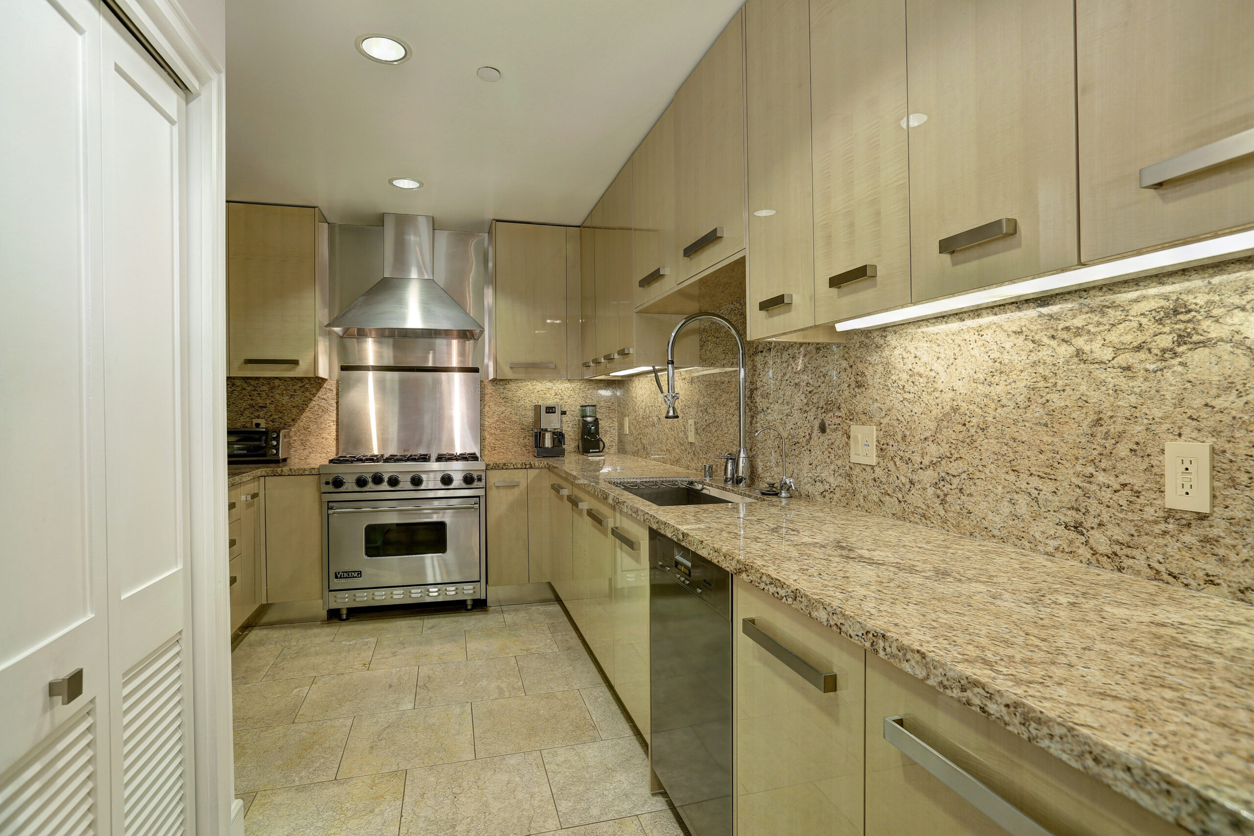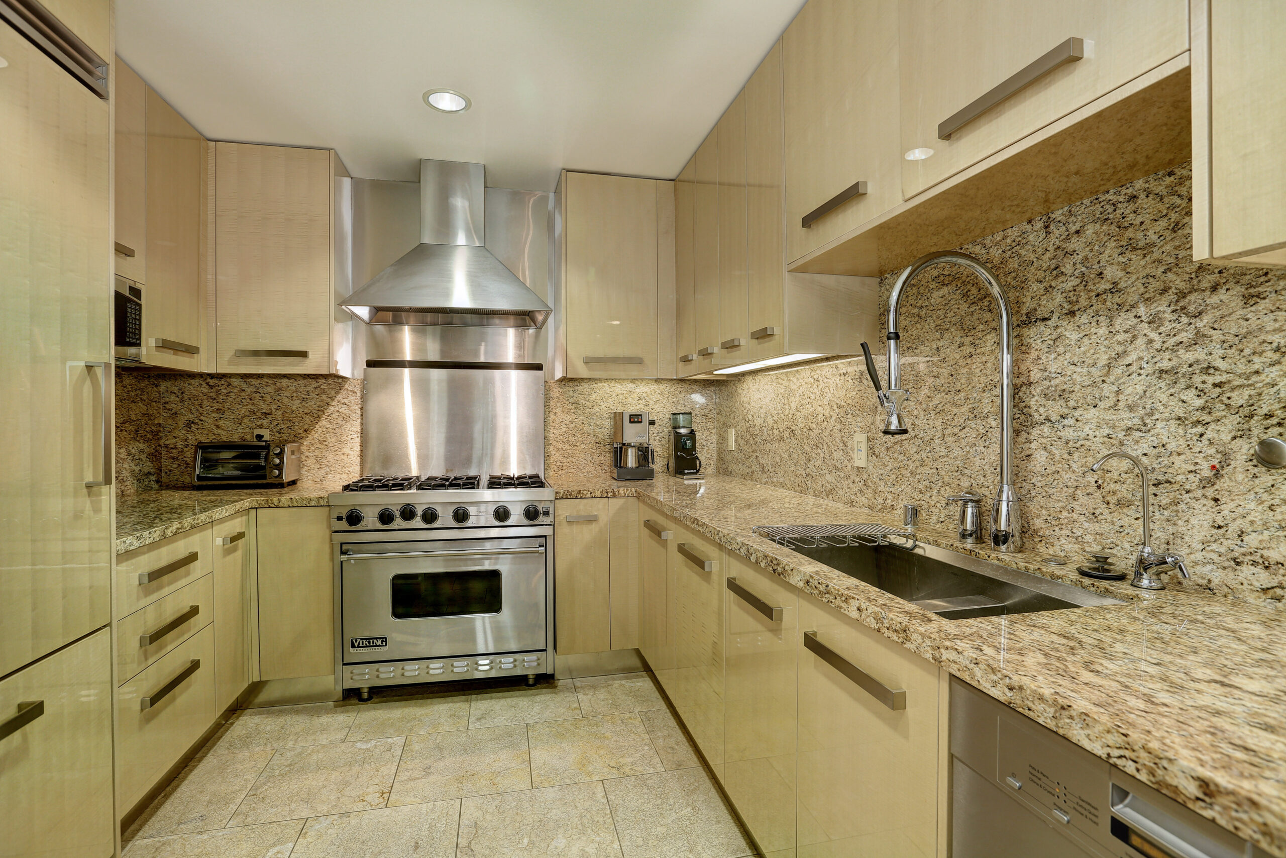 - Beautiful gourmet kitchen with stainless steel appliances, granite counters and stunning wood lacquered cabinets.
