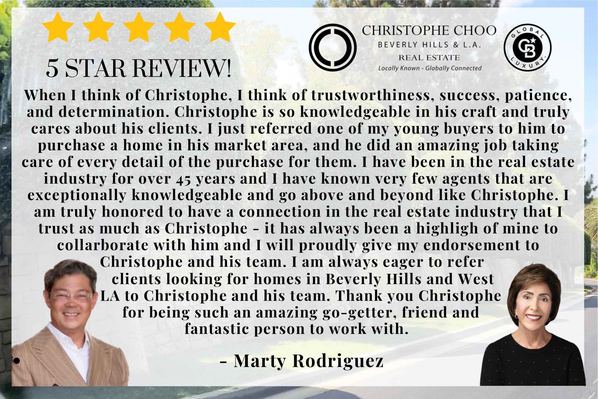 Overwhelmed with gratitude 🙏 for this shining five star ⭐⭐⭐⭐⭐ review from Marty Rodriguez! Your words light up our day as brightly as the California sun ☀️ shines over Beverly Hills! It's an honor to be recognized for our dedication 🏆 to excellence in real estate by such a respected industry veteran. Thank you, Marty, for entrusting your buyers to our care and for your partnership and trust throughout the years. Here's to many more successful collaborations 🤝 and to continuing to serve the Beverly Hills and West LA communities with integrity and passion! 🌴🏡