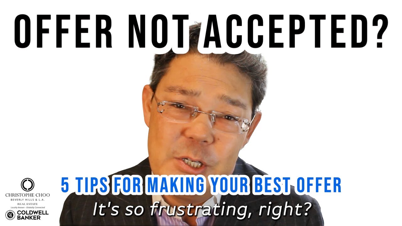 Are you having a difficult time with your offers not being accepted in this crazy housing market? Here are my 5 tips for making your offer stand out to sellers. Christophe Choo a real estate broker selling luxury real estate at Coldwell Banker Global Luxury in Beverly Hills and Los Angeles since 1989 gives advice on how to make your best offer.