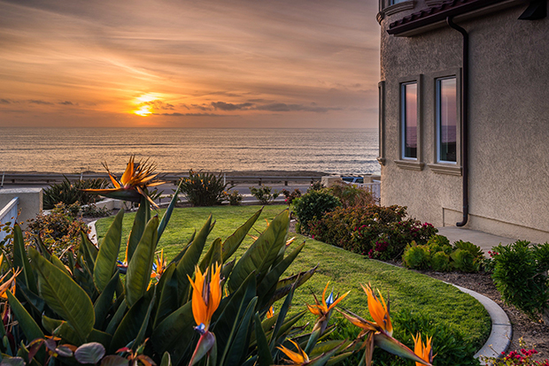 This Mediterranean San Diego dream home, listed by Trevor Pike with Coldwell Banker Residential Brokerage, matches its landscaping to the picturesque ocean sunsets. With bright oranges and reds so electric they can only be trumped by the ocean views to the South, West & North.