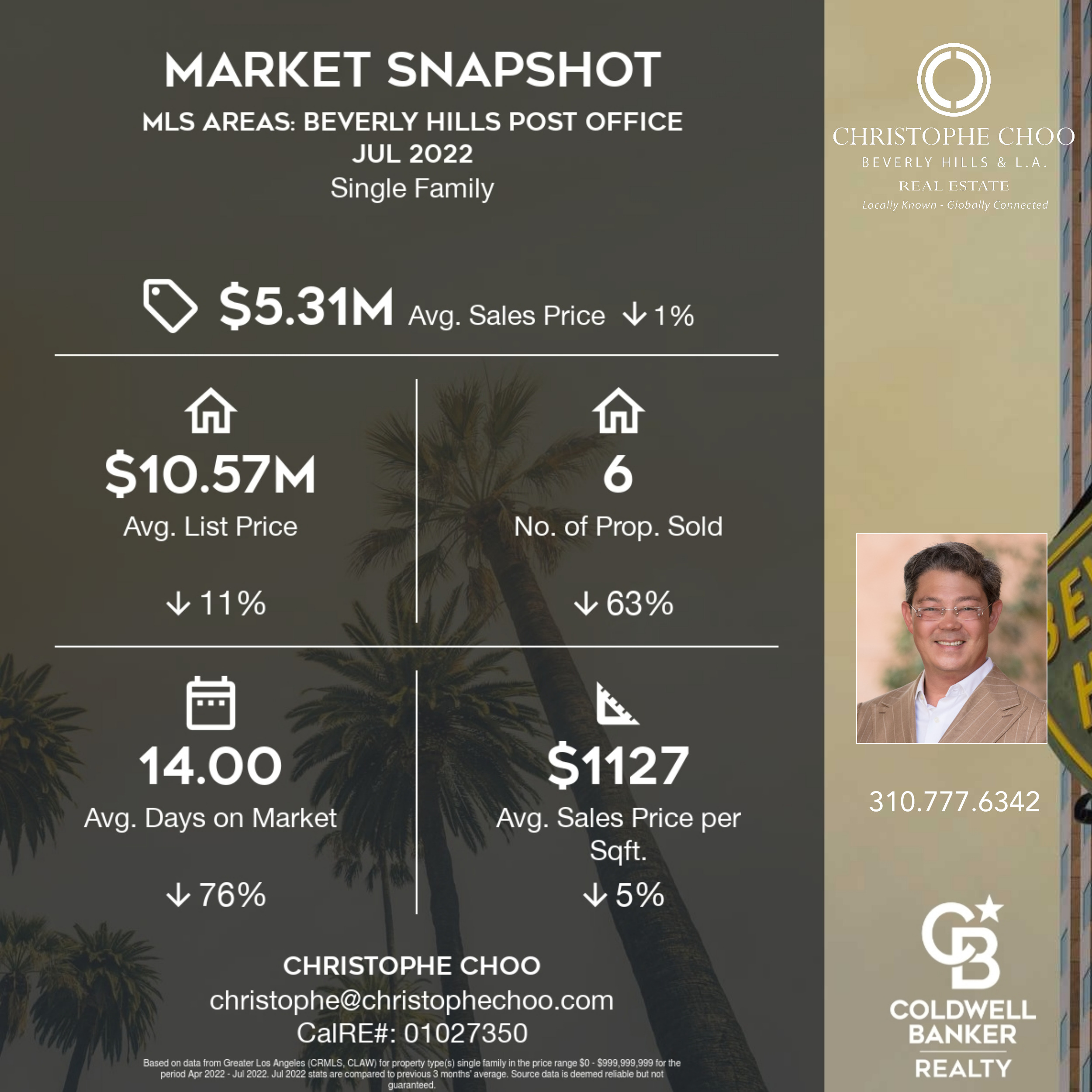 Beverly Hills Post Office Residential Real Estate Market Snapshot for July 2022 | Christophe Choo at Coldwell Banker Global Luxury is Your Local Real Estate Expert