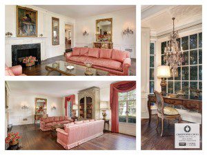 The exceptional living room with French Regency & Georgian Traditional style details at The Shuwarger House by Paul Willams Architect FAIA.