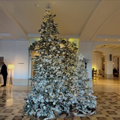The @themaybournebh Beverly Hills does it again! This stunning white-flocked Christmas tree, 🎄 dripping with elegance and golden lights, captures the magic of the se...