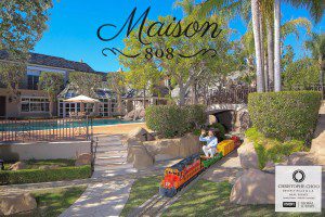 www.Maison808.com with a resort-style pool featuring a playful waterslide, cascading waterfalls & spa with an adjoining outdoor dining pavilion, kitchen and two pool bathrooms. The largest estate in the flats of Beverly Hills on 1.68 a...