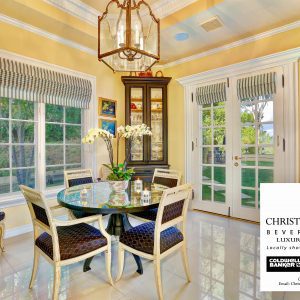 The perfect spot for breakfast or casual dining overlooking the garden and pool at The Summit Villa in Beverly Hills listed at $6,888,000
