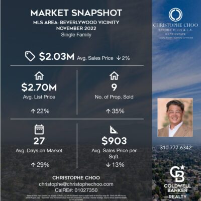 Beverlywood Vicinity Luxury Real Estate Market Snapshot for November 2022 | Christophe Choo at Coldwell Banker Global Luxury is Your Local Real Estate Expert