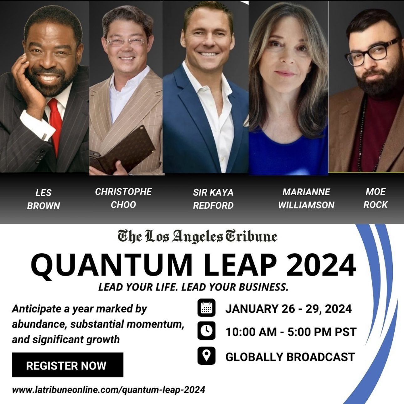 I am ecstatic to be a part of the speaker lineup for the Quantum Leap 2024 event presented by the Los Angeles Tribune! 😄🎤 This is more than just a conference; it’s a beacon for those looking to amplify their life and business to levels beyond their dreams. 🚀✨ Get ready for a blend of innovation, wisdom, and actionable insights as we navigate a year teeming with opportunity and growth. 🌟📈 Mark your calendars for January 26-29, 2024, and let’s make this a transformative experience together! 🗓️✅ Don’t miss out – register now and take the leap with us! 🌐💼