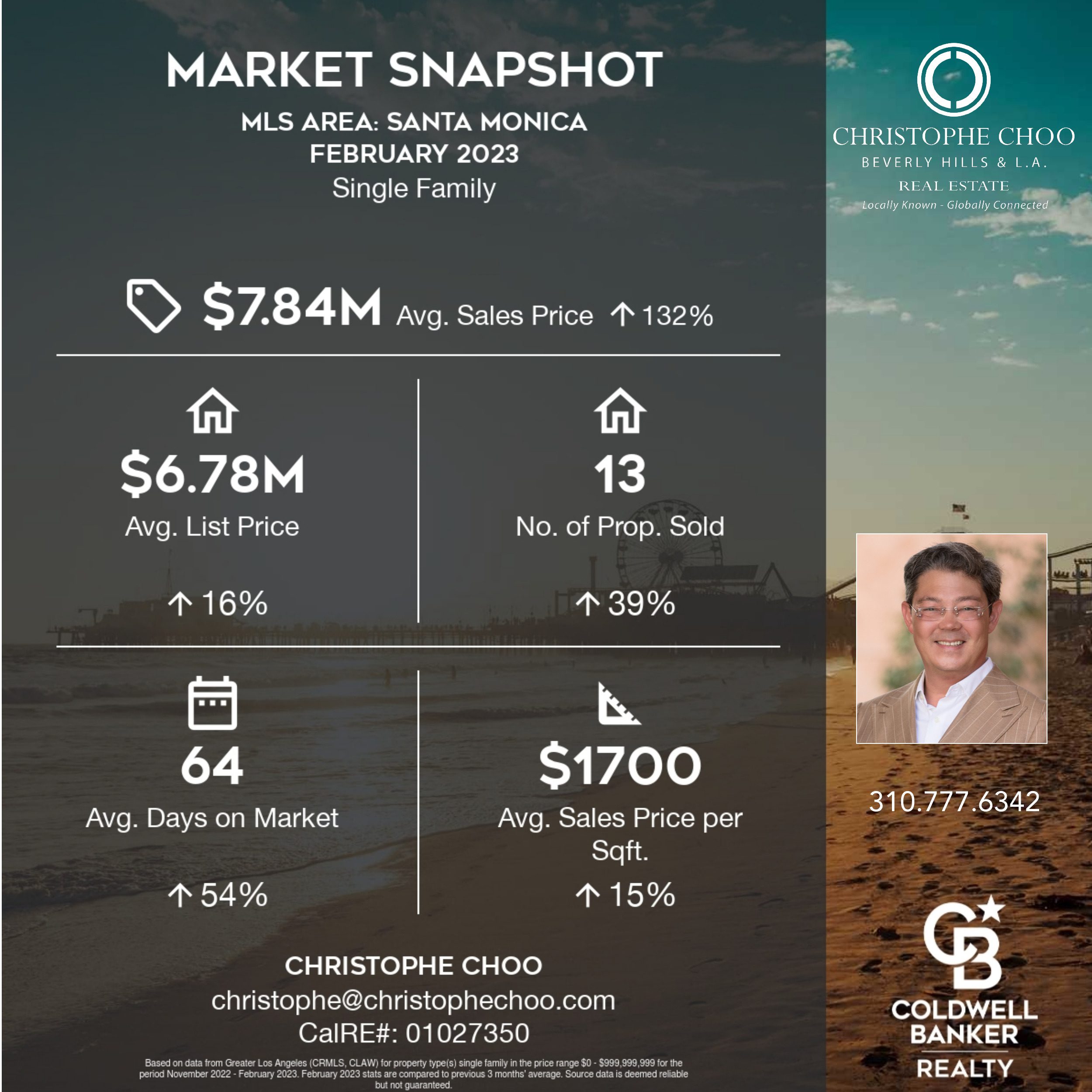 City of Santa Monica, Los Angeles, CA Luxury Real Estate Market Snapshot for February 2023 | Christophe Choo at Coldwell Banker Global Luxury is Your Local Real Estate Expert