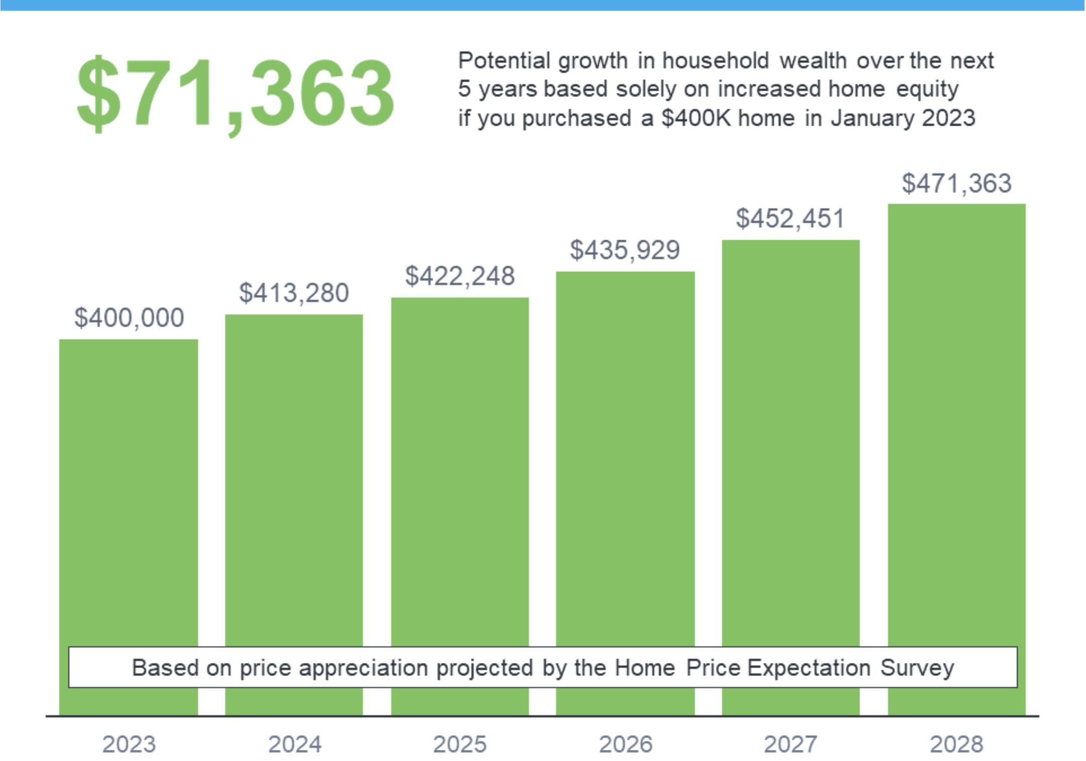What Does This Mean for You? To put these projections into perspective, consider the potential growth in property value in Los Angeles and Beverly Hills. For instance, a $400,000 home, a figure more reflective of national averages than the higher property values typical in LA and Beverly Hills, could see an increase in value, contributing substantially to household wealth over the next five years. In LA and Beverly Hills, where property values are significantly higher, the potential for wealth accumulation through real estate could be even more pronounced.