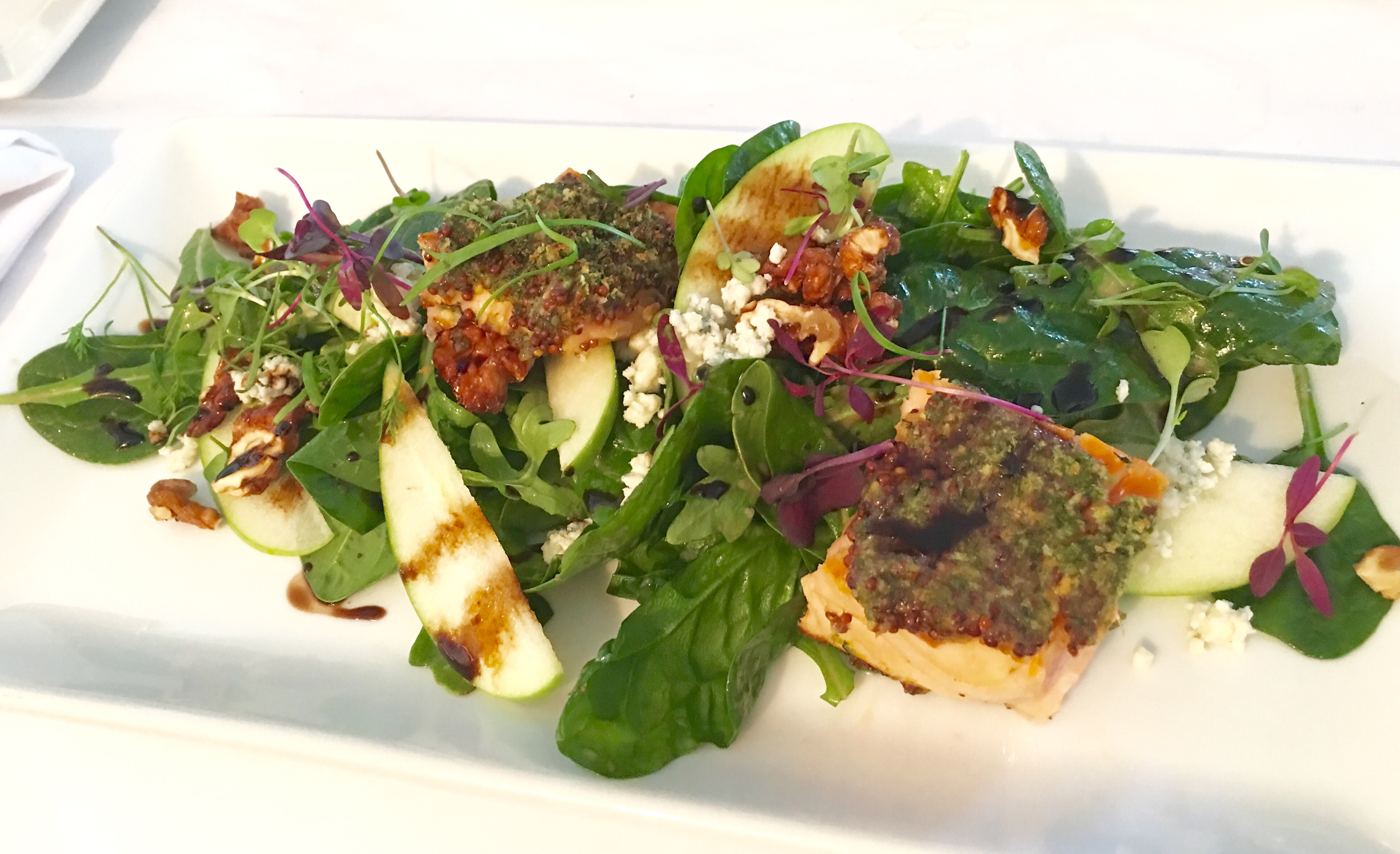 Fabulous Herb Crusted Salmon Salad at Lisa Vanderpump’s Villa Blanca in Beverly Hills by Chef Tillo Fernandez.