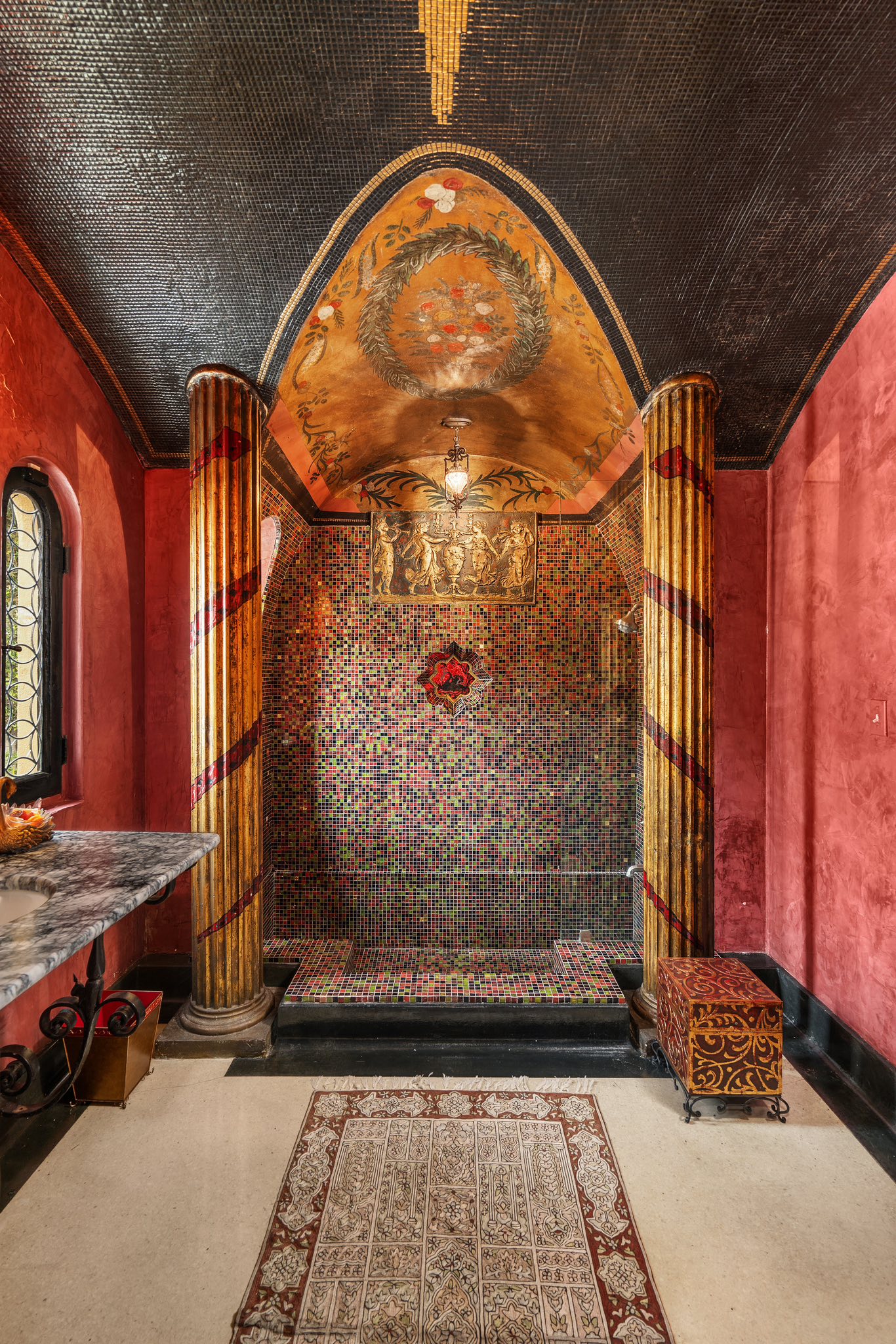 This legendary bedroom suite is a kaleidoscopic blend of exotic design and bohemian glamour. Lavishly adorned with bold jewel-toned walls, custom artisan furnishings, hand-carved woodwork, and Moroccan and Andalusian accents, the room is a masterclass in maximalist design.