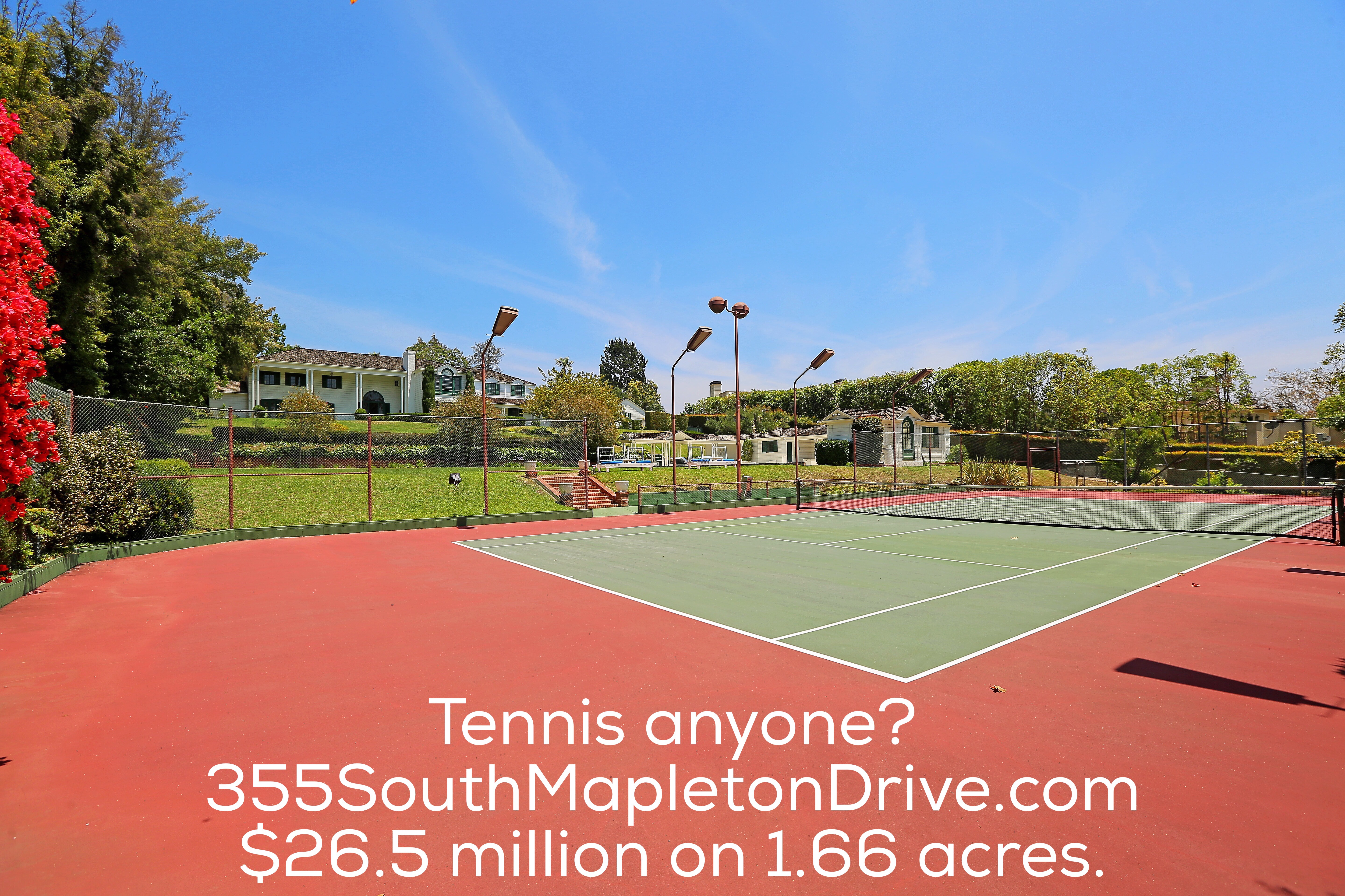 It’s always time for tennis in Holmby Hills at 355 South Mapleton Drive listed at $26.5 million.