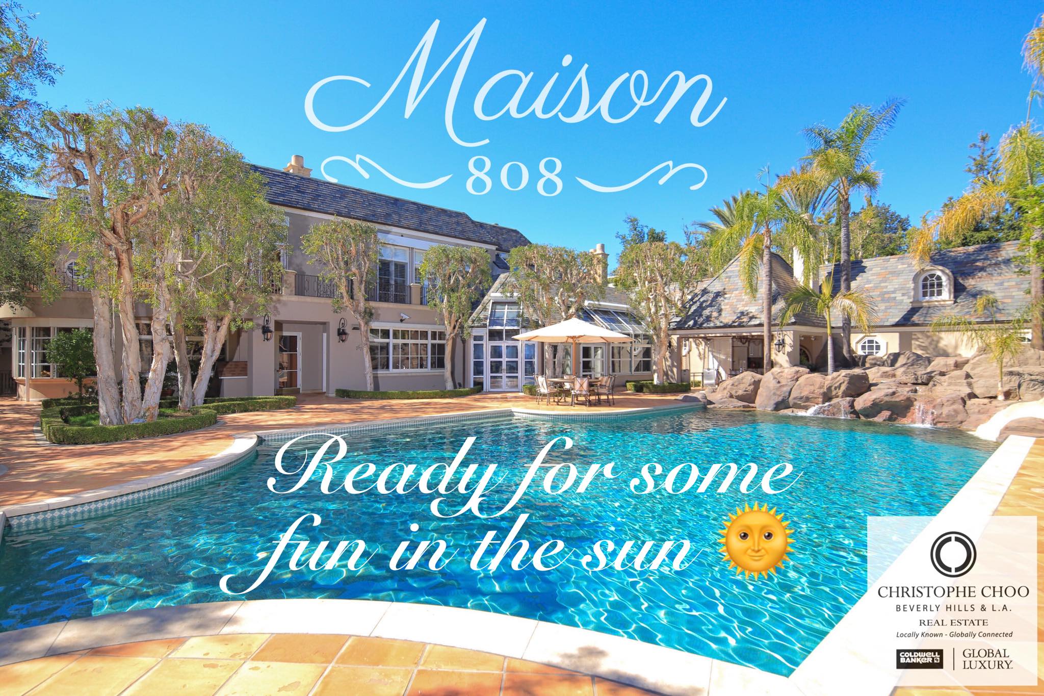 Maison 808 in Beverly Hills with a resort-style pool featuring a playful waterslide, cascading waterfalls & spa