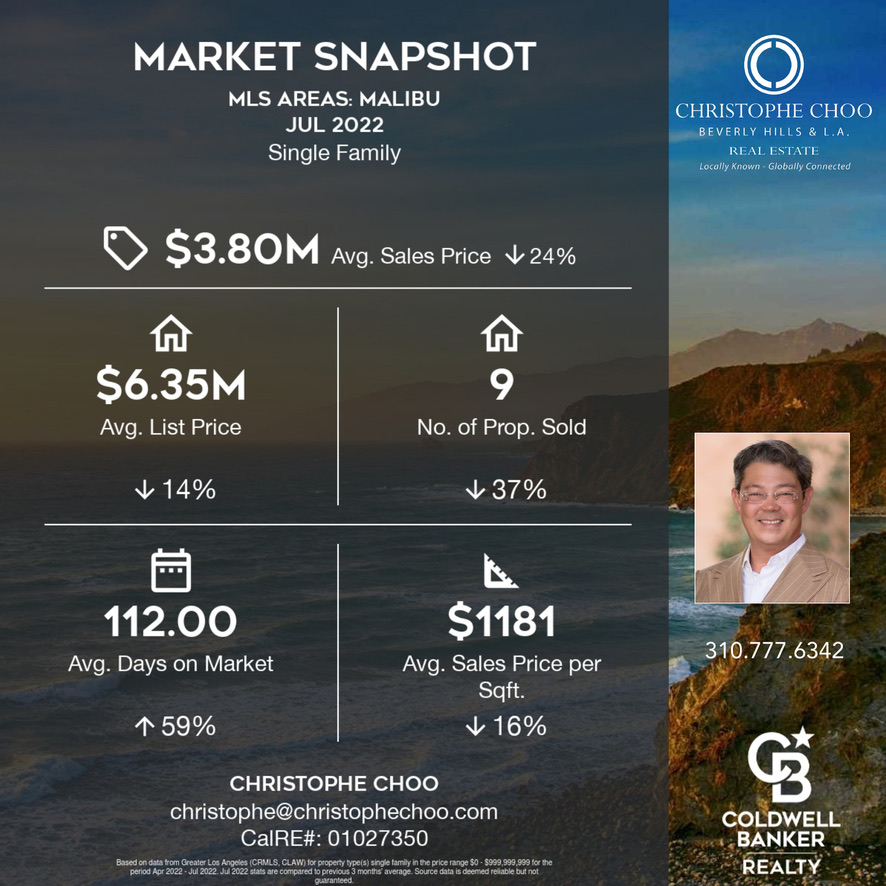 Malibu Residential Real Estate Market Snapshot for July 2022 | Christophe Choo at Coldwell Banker Global Luxury is Your Local Real Estate Expert