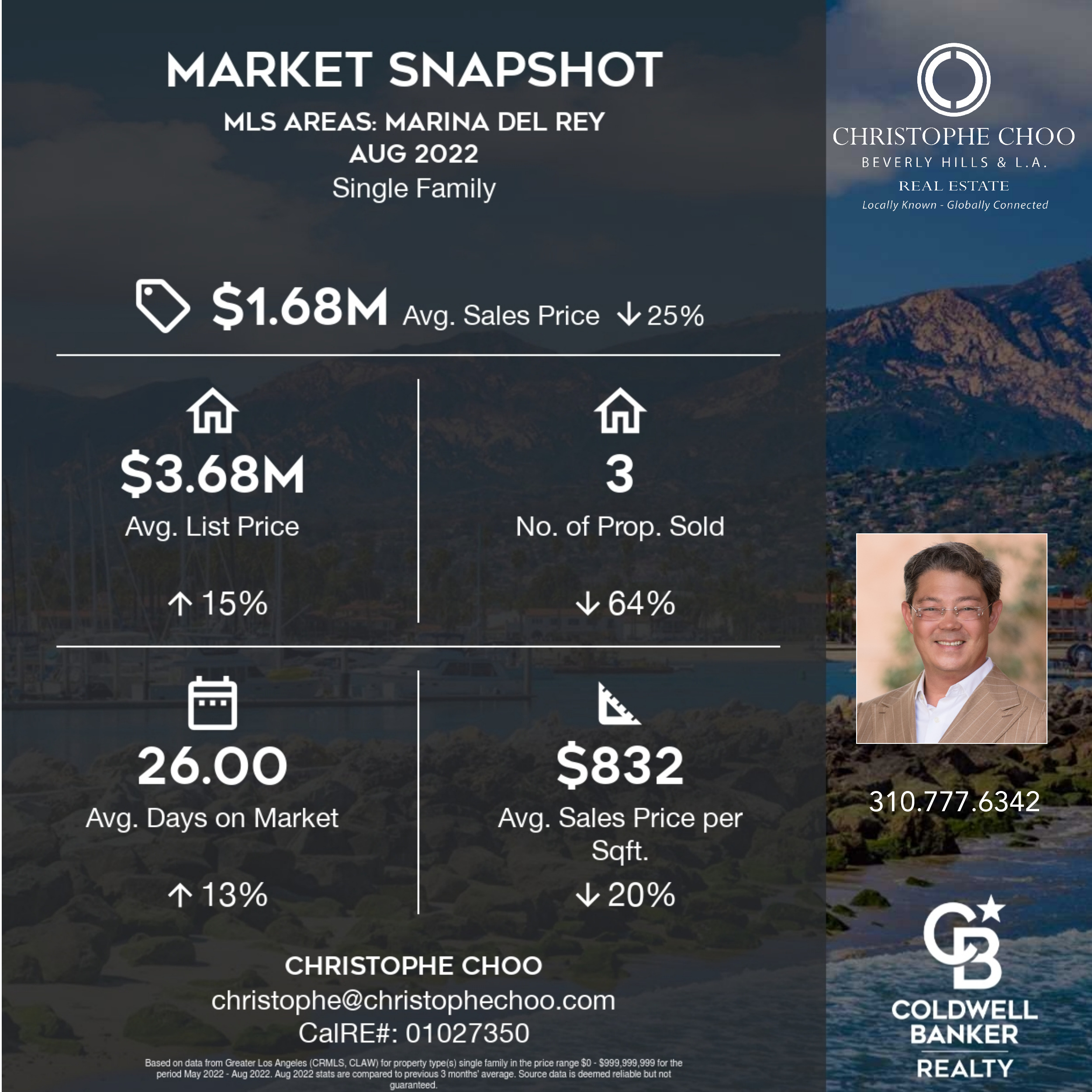 Marina Del Rey Luxury Real Estate Market Snapshot for August 2022 | Christophe Choo at Coldwell Banker Global Luxury is Your Local Real Estate Expert