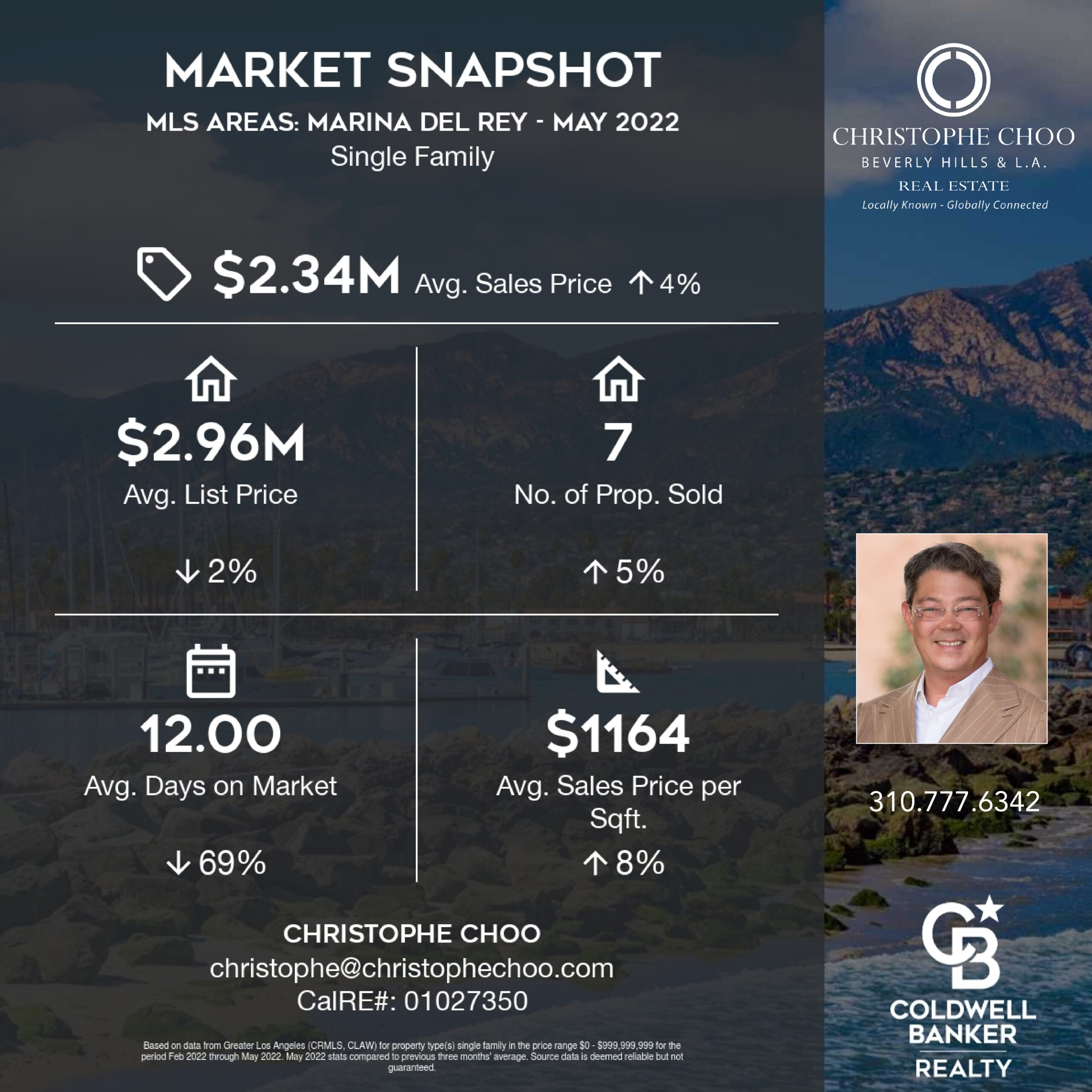 Marina Del Rey Residential Real Estate Market Snapshot for May 2022 Christophe Choo at Coldwell Banker Global Luxury is Your Local Real Estate Expert