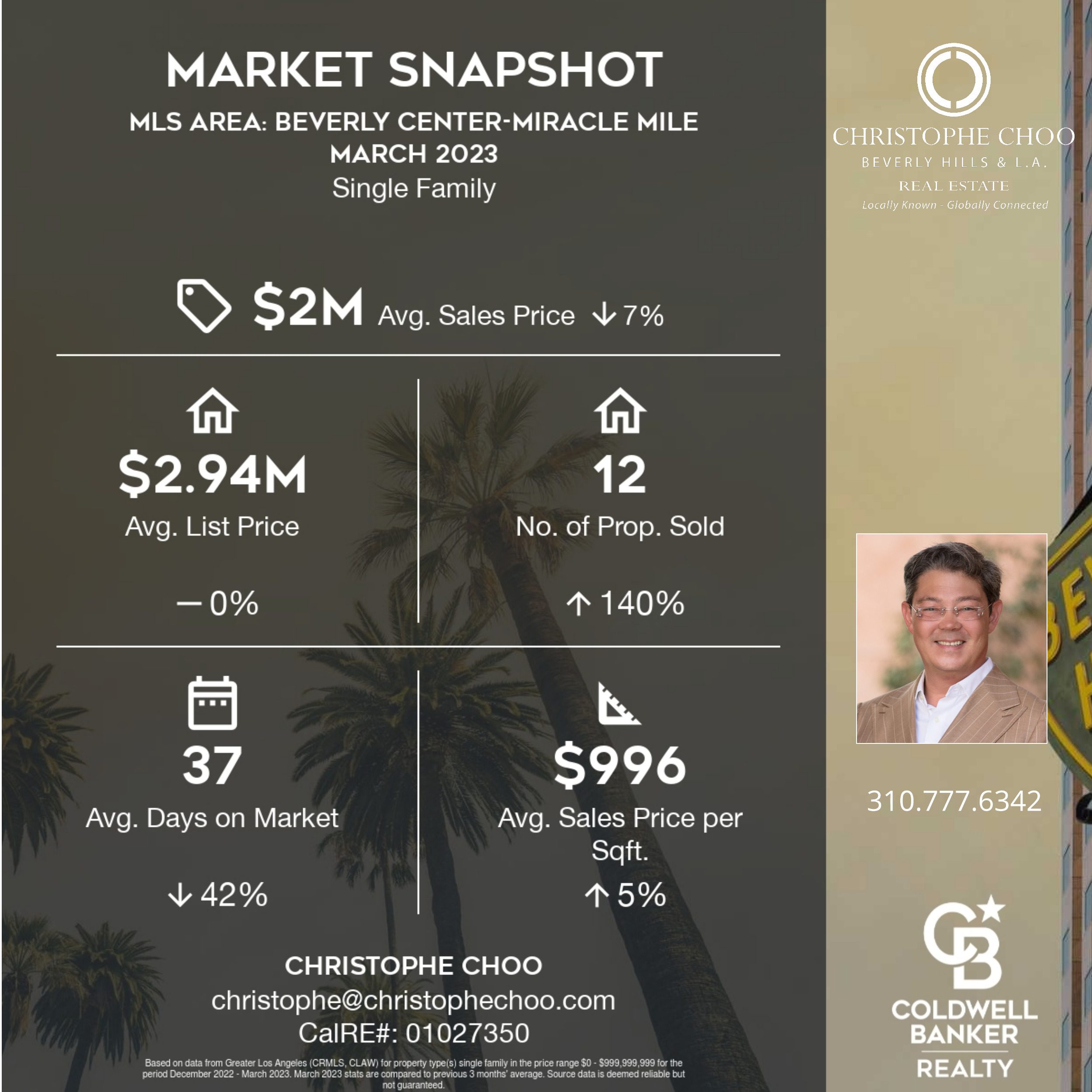 Market Snapshot - Beverly Center - Miracle Mile as of March 2023 | Christophe Choo at Coldwell Banker Global Luxury is Your Local Real Estate Expert
