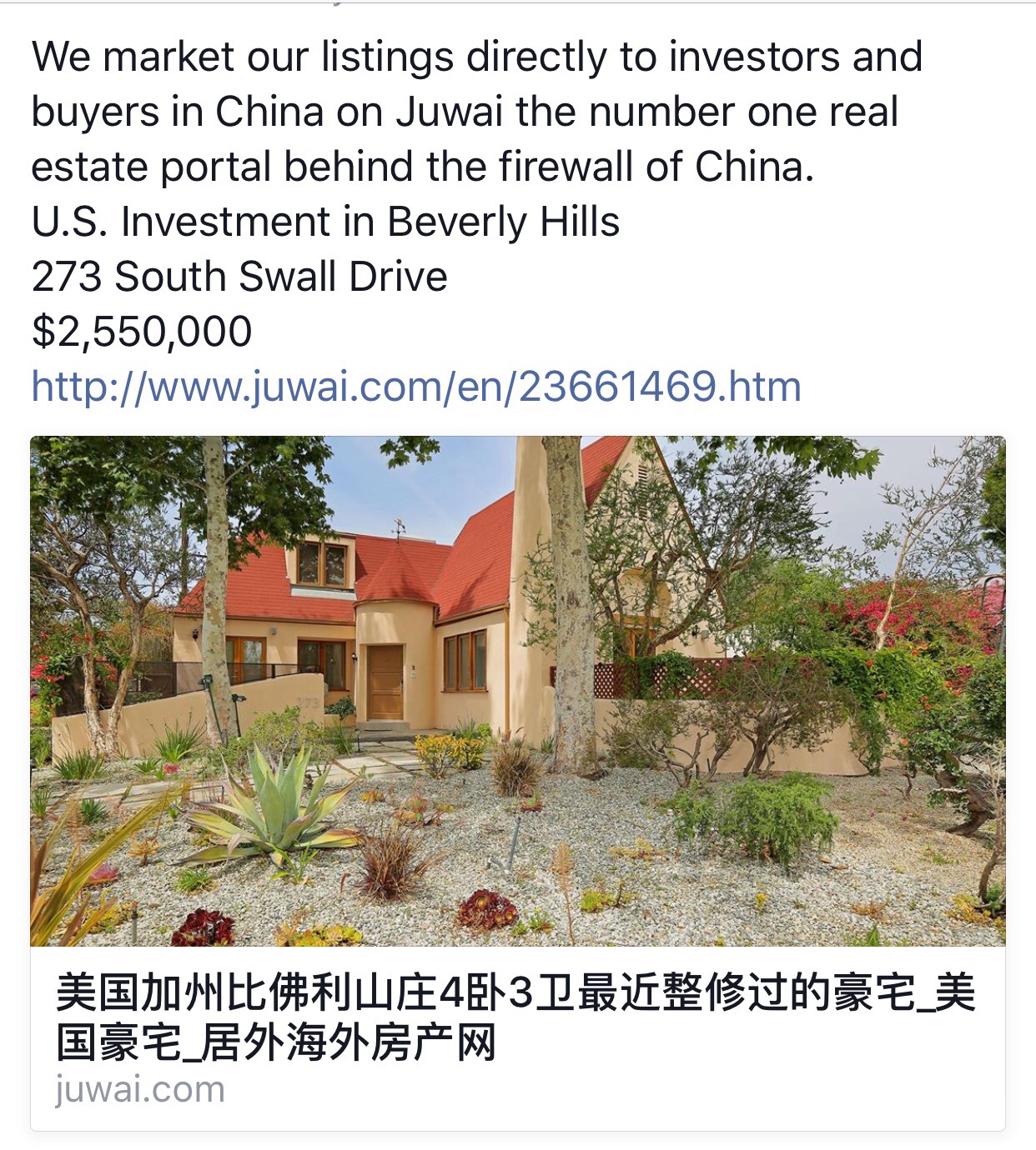 Home » Marketing Beverly Hills Investment Properties Direct to Chinese Buyers. Marketing Beverly Hills Investment Properties Direct to Chinese Buyers. By Christophe Choo Posted Apr 29, 2016 Beverly Hills, Latest Updates Marketing Beverly Hills Investment Properties Direct to Chinese Buyers. Considering 11% of luxury homes in Beverly Hills sold to Chinese nationals we market directly to them in China. #China #buyers #realestate #BeverlyHills