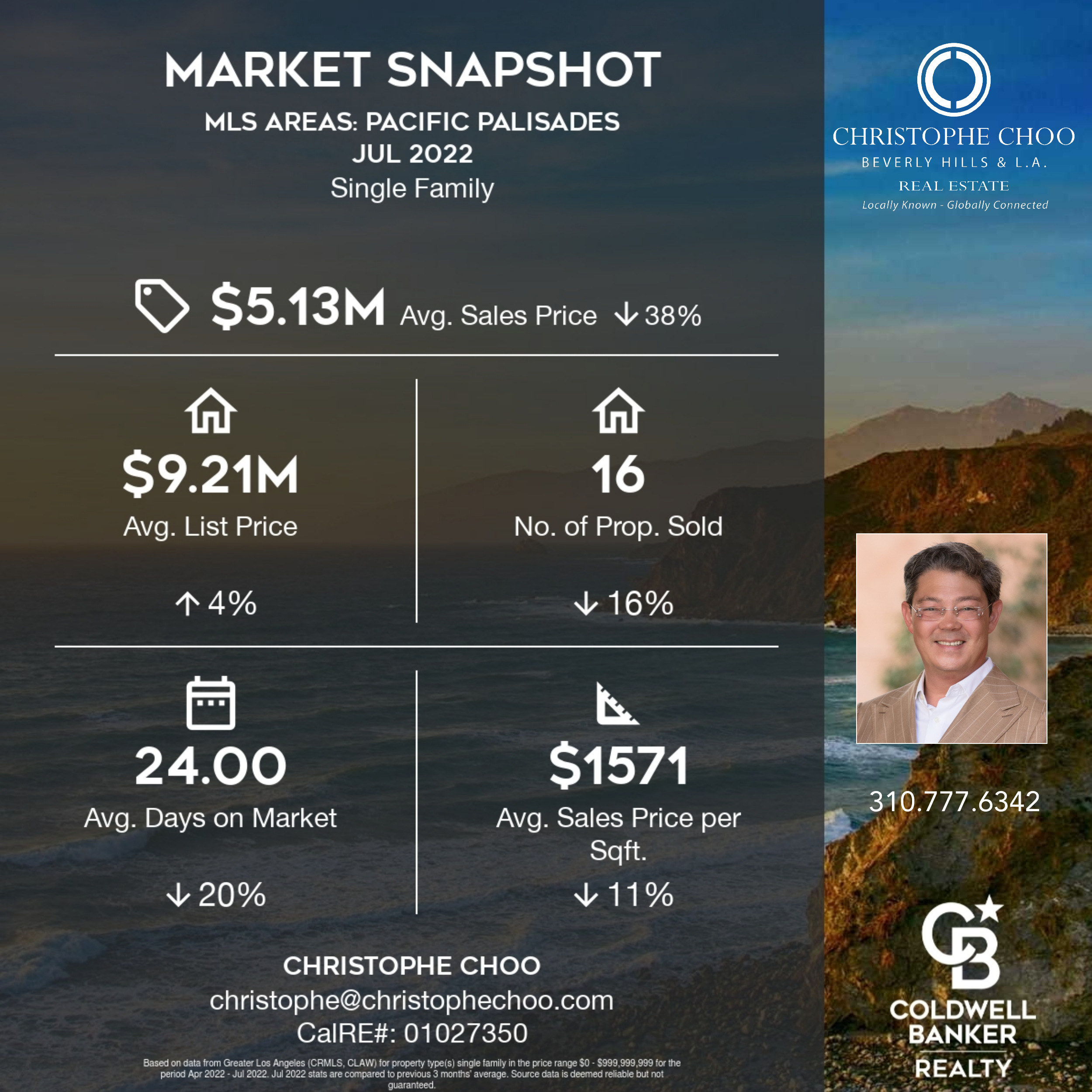 Pacific Palisades Residential Real Estate Market Snapshot for July 2022 | Christophe Choo at Coldwell Banker Global Luxury is Your Local Real Estate Expert