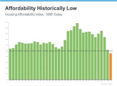 The National Association of Realtors (NAR) explains the graph's indices: “A value of 100 means that a family with the median income has exactly enough income to qualify for a mortgage on a median-priced home.” The black dotted line represents that 100 value on the index. The higher the bar, the more affordable homes are. As indicated by the orange bar, today’s higher mortgage rates and home prices have created a clear challenge. However, this does not imply that the housing market is stagnant, even in premium markets like Los Angeles and Beverly Hills.