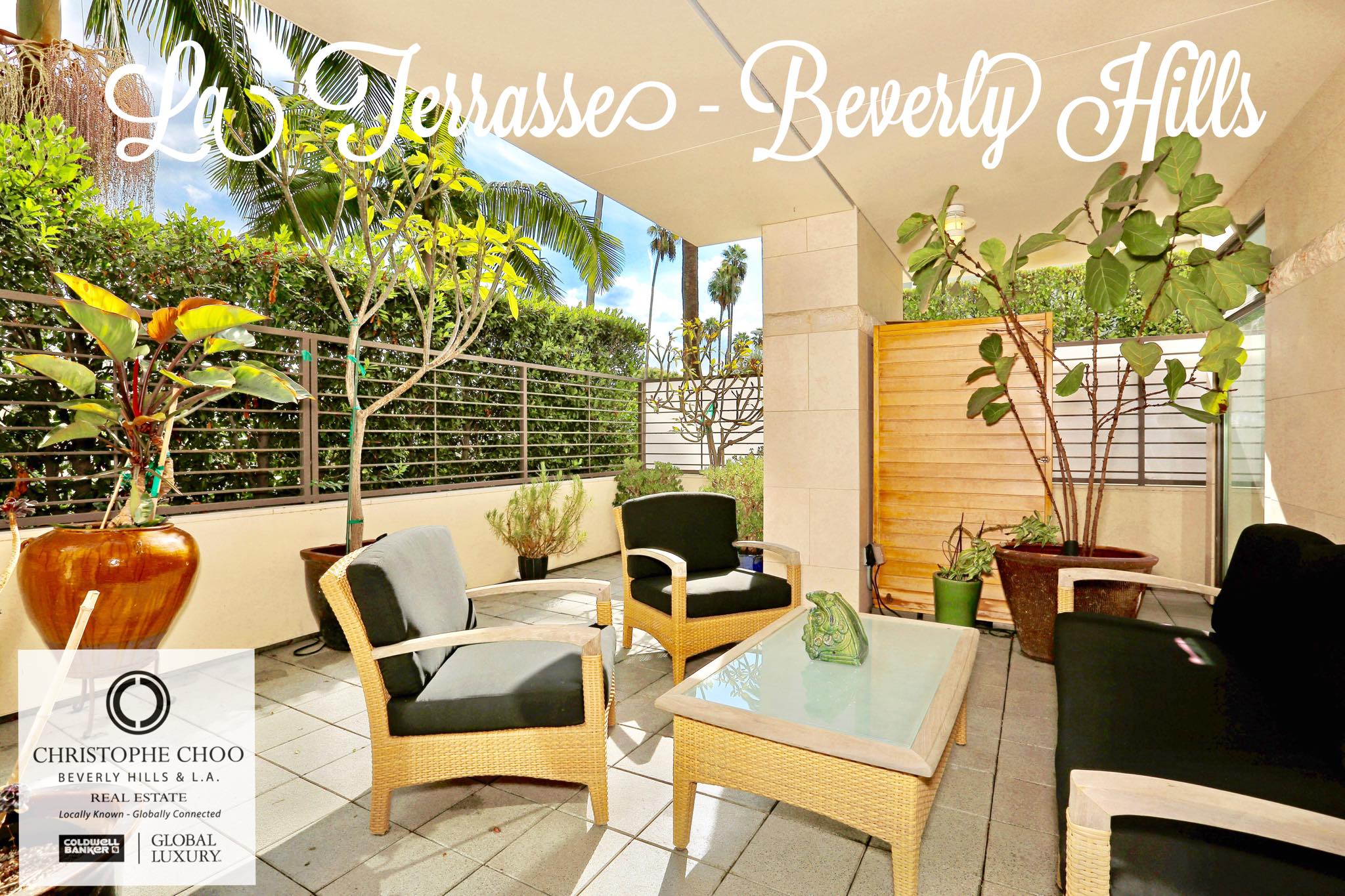 The perfect spot to relax and enjoy the great outdoors on your private “terrasse” at La Terrasse in Beverly Hills.