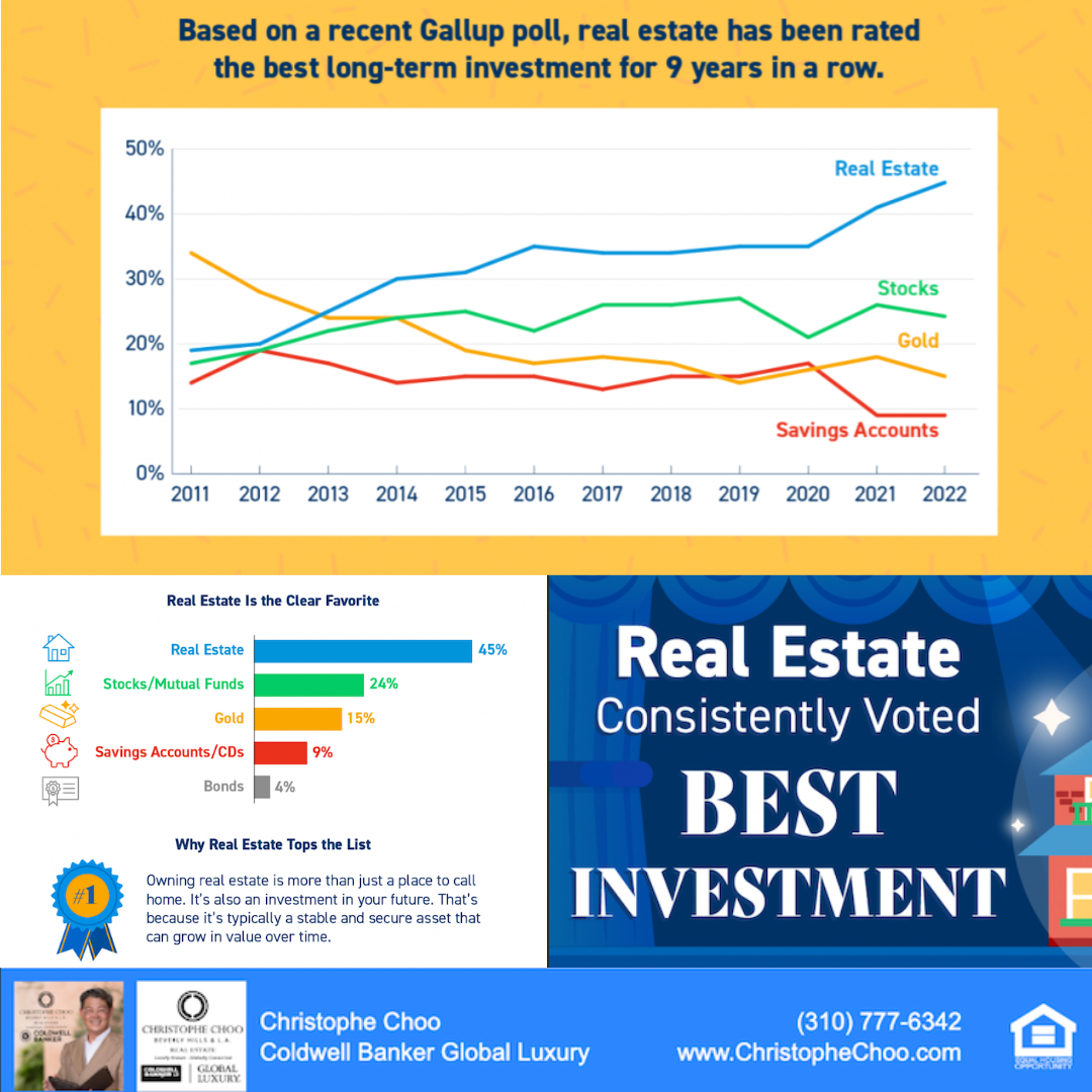 Based on a recent Gallup poll, real estate has been rated the best long-term investment for nine years in a row.