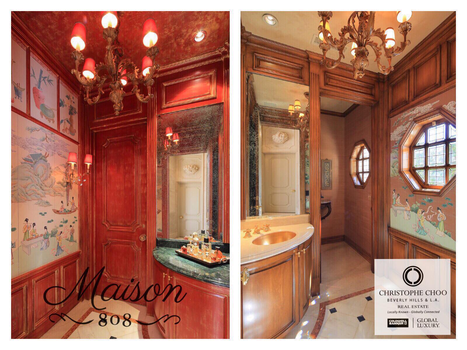 Chinoiserie since the 17th century has been consider the height of refined elegance and design, with roots in European art & antiques that are influenced by Chinese arts. Some of the most prominent examples of Chinoiserie can be found in royal palaces in Europe, such as the Drottningholm Palace in Sweden and Tsarskoye Selo in Russia. Maison 808 in Beverly Hills has some of the finest example of Chinoiserie design in America as seen in the his & his entry powder rooms. Listed at $58,888,000