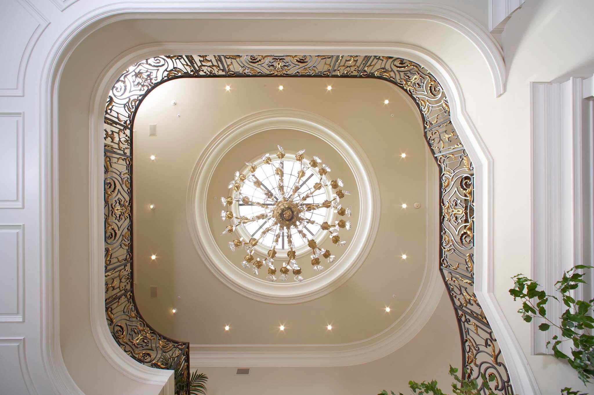 In real estate it's all about the details. I love the simplicity and elegance of the ceiling of this staircase at a home I sold in Holmby Hills. The elegant chandelier, wrought iron and wonderful skylight. #interior #chandelier #staircase #HolmbyHills