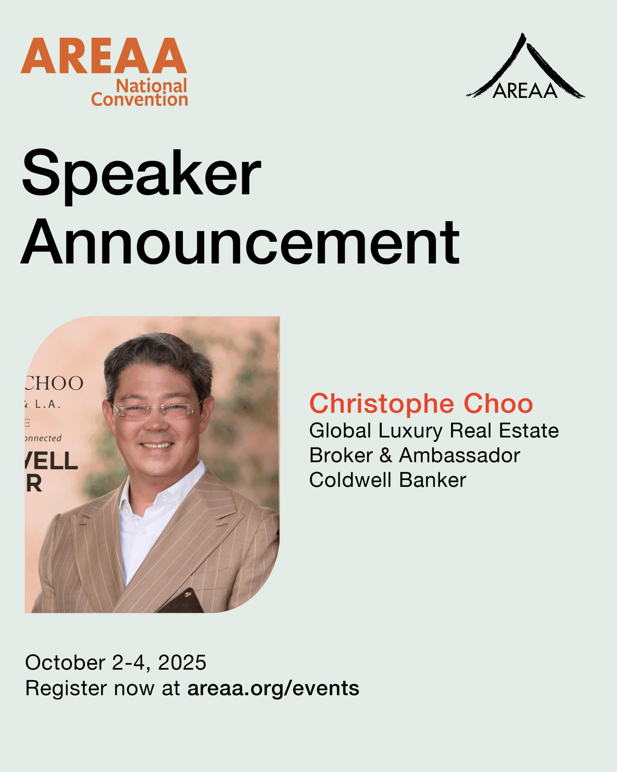 I’m excited to share that I will once again be speaking at the Asian Real Estate Association of America (AREAA) National Convention, taking place in Los Angeles this October.