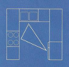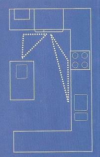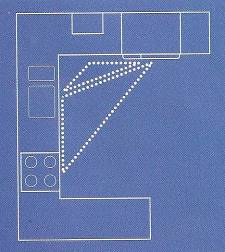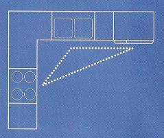Here are drawings of the six most common kitchen layouts. Each drawing also includes an outline of the work triangle, which represents the distance from the refrigerator to the range to the sink.