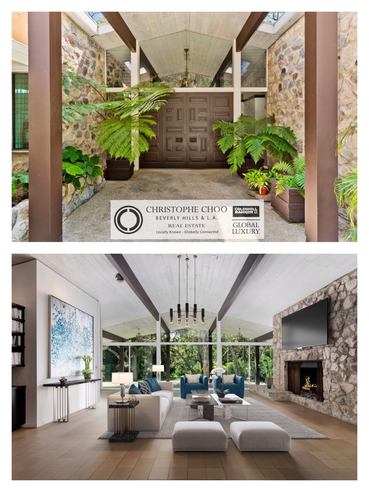 This super hip and cool 😎 mid-century style entry with river rock and skylights leads you into the grand living room overlooking your 4+ acre private domain. Complete and utter privacy at the end of a private road on a cul-de-sac and connected with a walking 🚶♀️🚶 and horse 🐎 trail to the 189 acre Will Rogers Park. The ultimate in privacy and seclusion in the Pacific Palisades area of Los Angeles. Fantastic new price of $10,995,000
