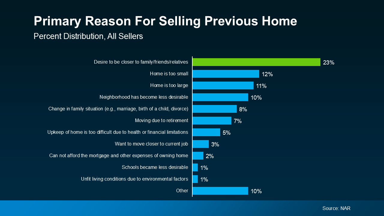 Have you ever dreamed of shortening the distance between you and the people who matter most? Whether it’s reducing long drives to see your family, creating a stronger bond with your grandchildren, or simply being around friends for impromptu dinners, proximity to loved ones is a major motivator for moving. Recent data from the National Association of Realtors (NAR) highlights this as the #1 reason people move – to be closer to family and friends.