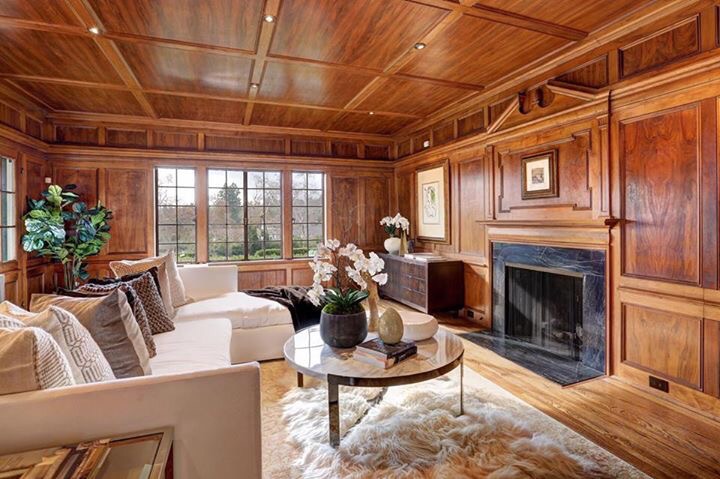 The grand and elegant family room with original Palladian style wood details from the 1930's at the Alan Dwan estate in Holmby Hills listed at $22,850,000 click here for all the details 👉🏻 355 South Mapleton Drive