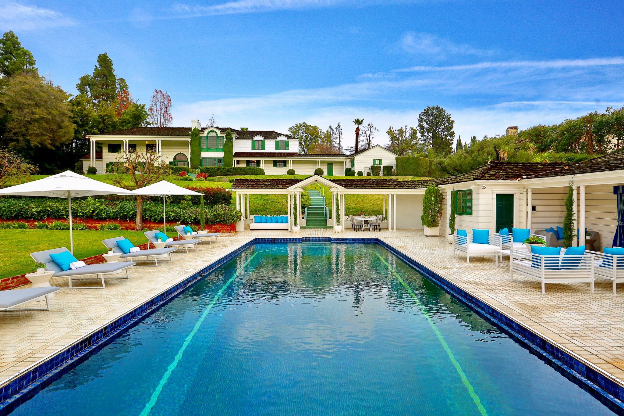 The iconic pool and pool pavilion at the Alan Dwan estate in Holmby Hills.