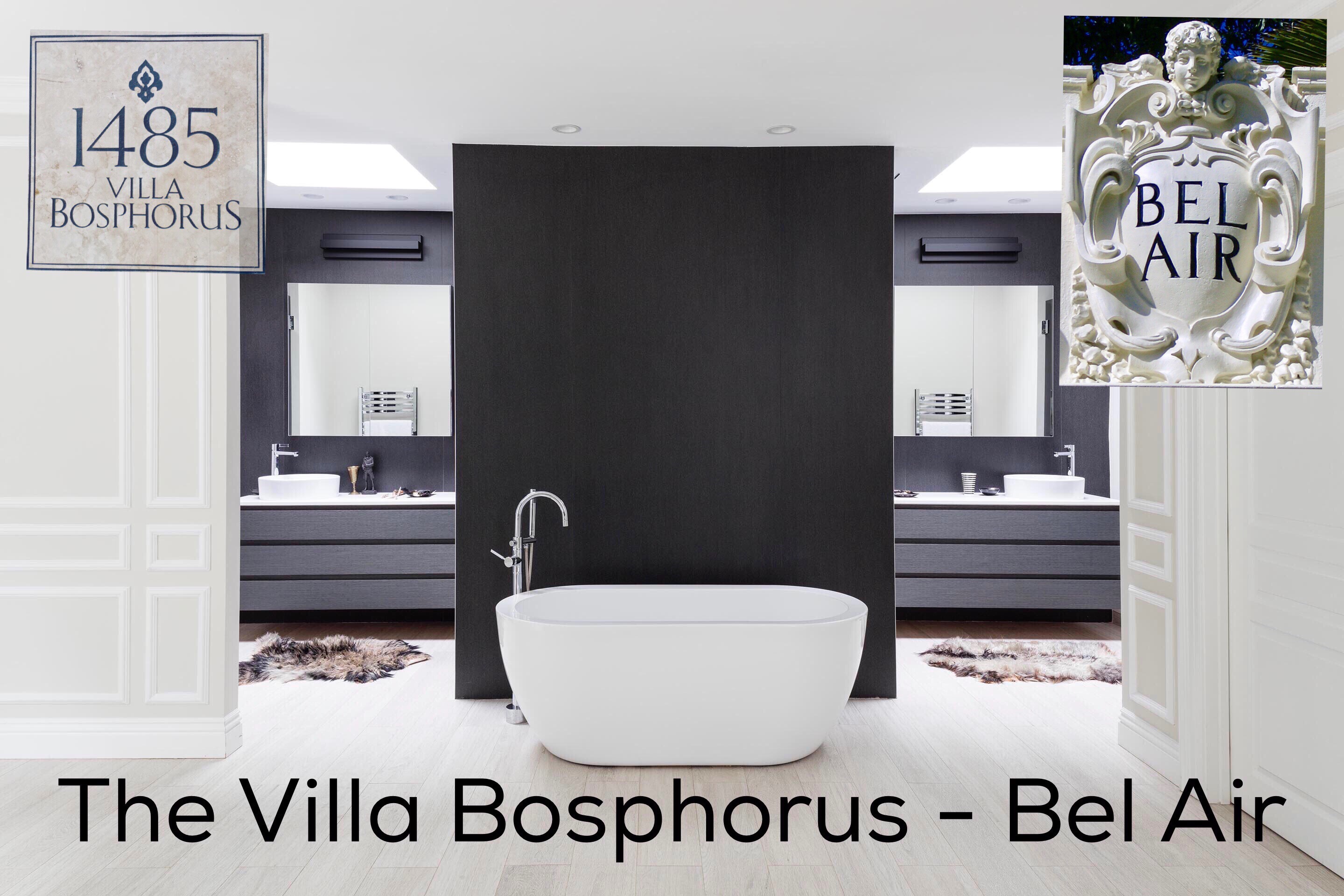 The stunning and modern European style master bathroom at the Villa Bosphorus in Bel Air.