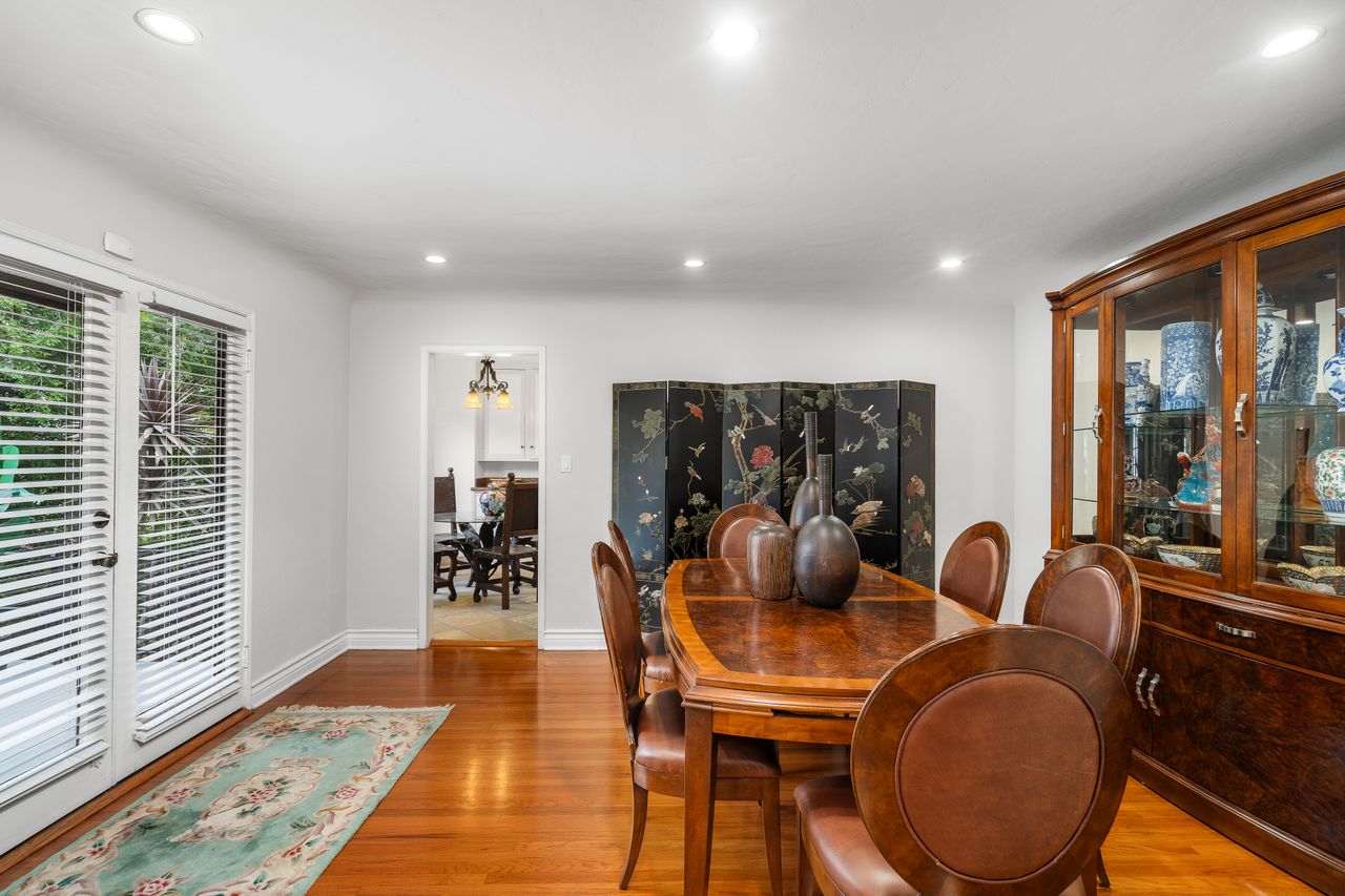 From the moment you step through the entry, you’re welcomed into a residence filled with light, grace, and craftsmanship. The formal living and dining rooms showcase original crown molding, steel casement windows, and beautifully maintained hardwood floors — an homage to the home's rich architectural history.