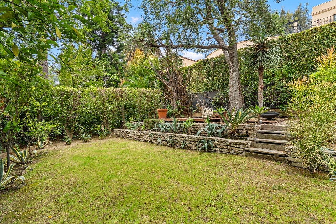Outdoors, the lushly landscaped garden and elevated terrace provide a quiet, private setting for morning coffee, sunset cocktails, or simply enjoying the panoramic city skyline.
